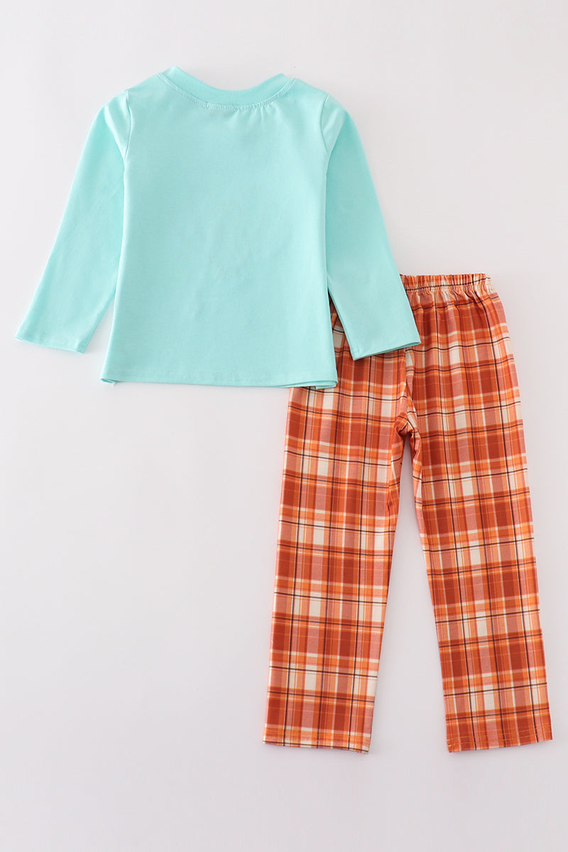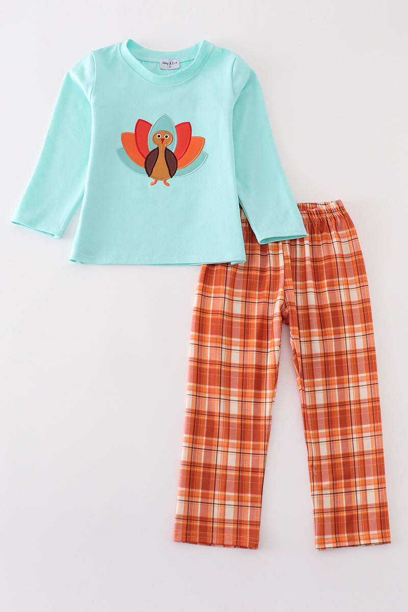 Introducing our Green Turkey Applique Boy Set, perfect for your little one's Thanksgiving festivities! This set features a charming green turkey applique and is made from soft, durable materials for maximum comfort. Get ready to gobble up all the compliments in this playful and adorable outfit.