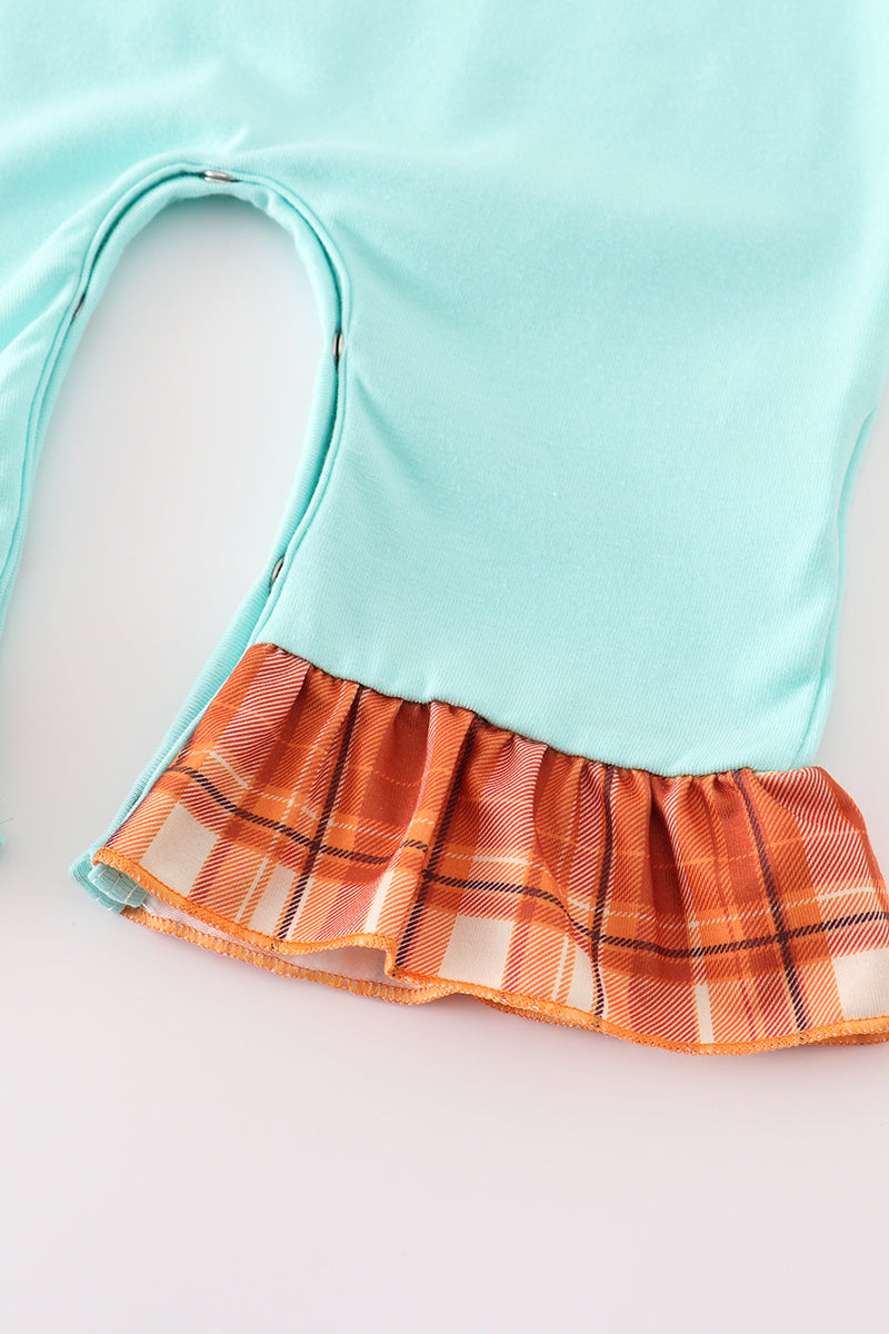 Gobble up the cuteness with our Green Turkey Applique Girl Romper! This playful piece features a charming turkey applique design, perfect for adding a touch of whimsy to your little one's outfit. The soft, comfortable fabric ensures she'll be stylish and cozy all day long.