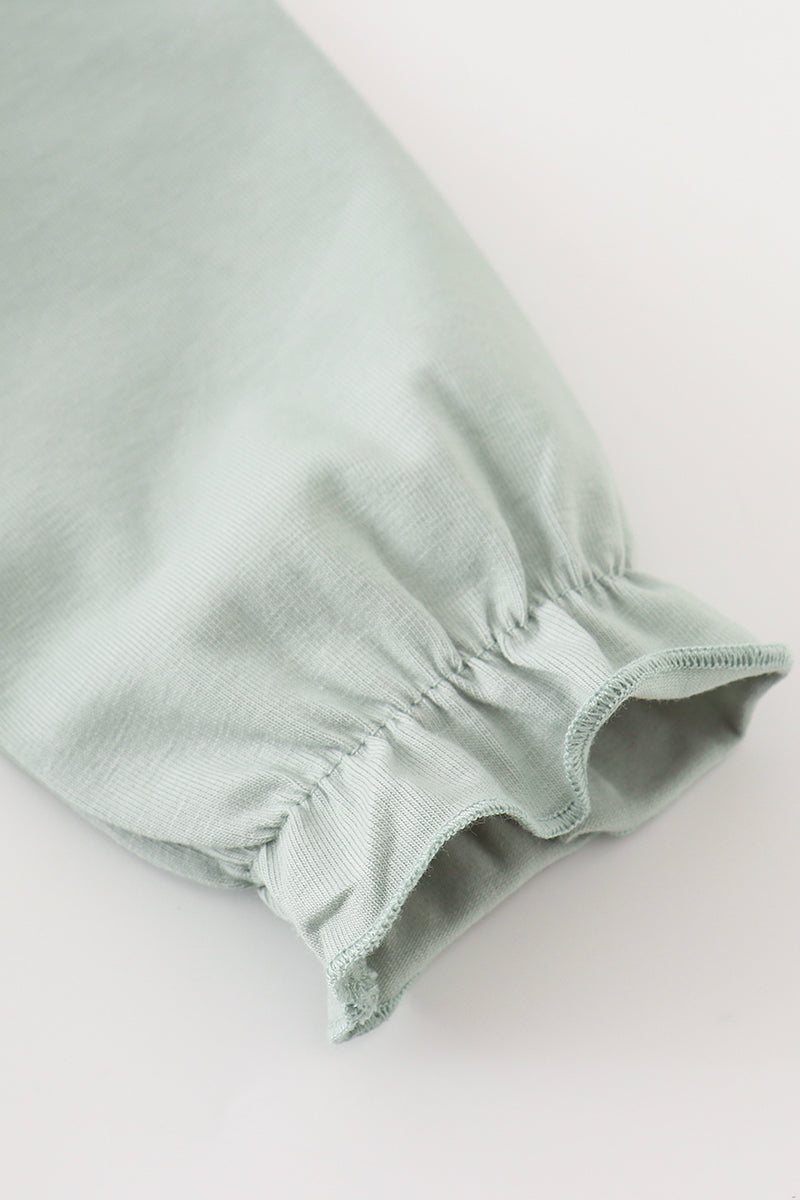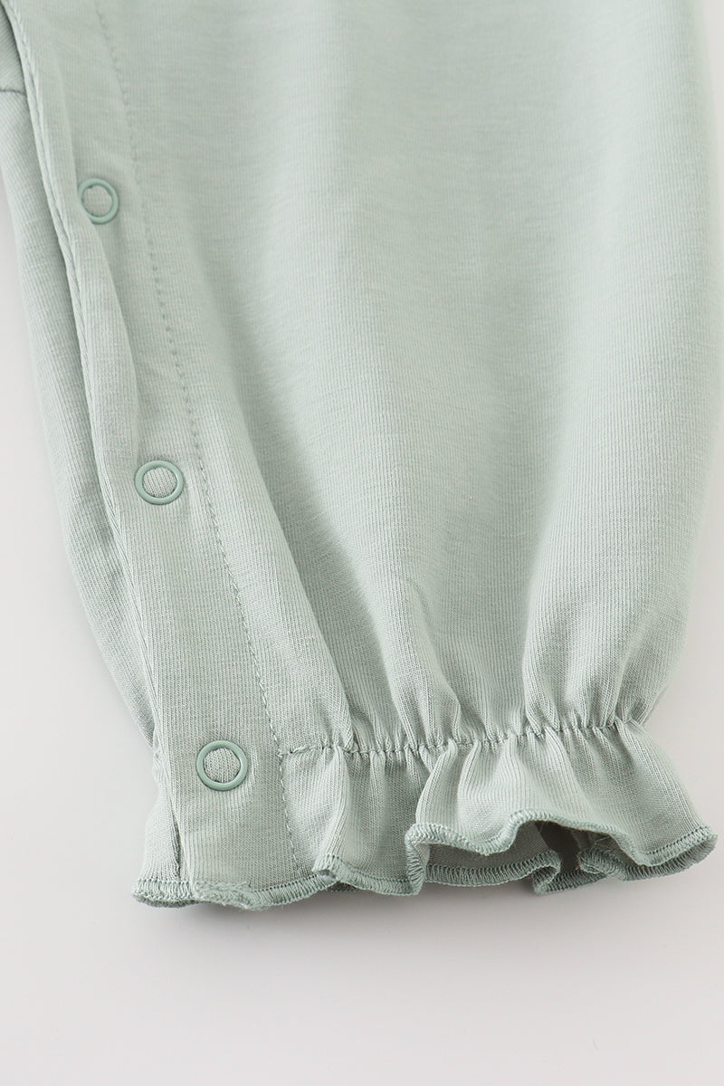 Gobble up the cuteness with this green turkey embroidered romper for girls. Perfect for holiday photos and festive occasions, this romper will have everyone fawning over your little one. Don't wait, grab one before they fly off the shelves!