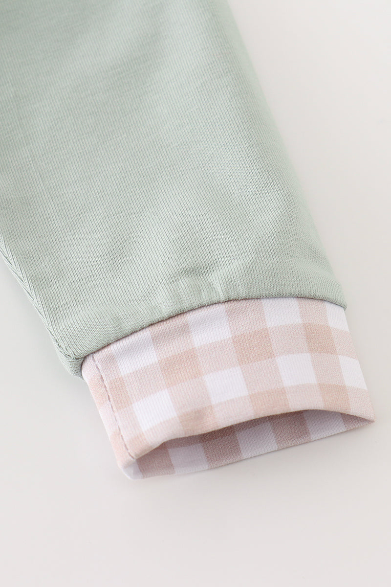 Introducing our Premium Green turkey embroidery romper for boys! This quirky and playful romper features a vibrant green color and fun turkey embroidery for a unique and stylish look. Perfect for any special occasion, this romper is made with premium materials, ensuring comfort and durability. Gobble up this adorable outfit today!