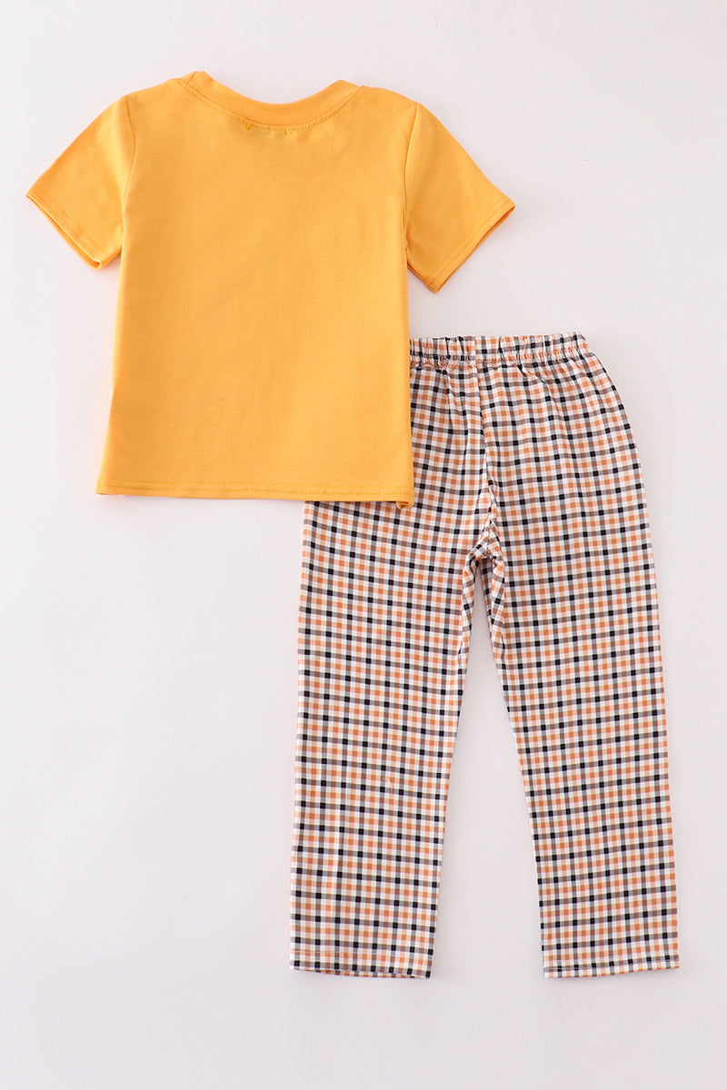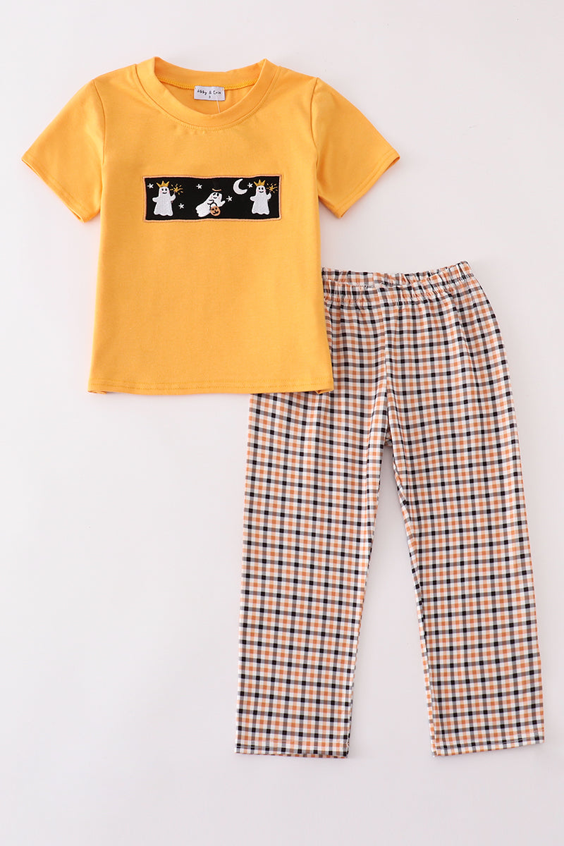 Get your little one dressed up for Halloween in our spook-tacular ghost embroidered plaid boy set! Made with high-quality materials and featuring a playful ghost design, this set is perfect for trick-or-treating or Halloween parties. Get ready for a boo-tiful time!