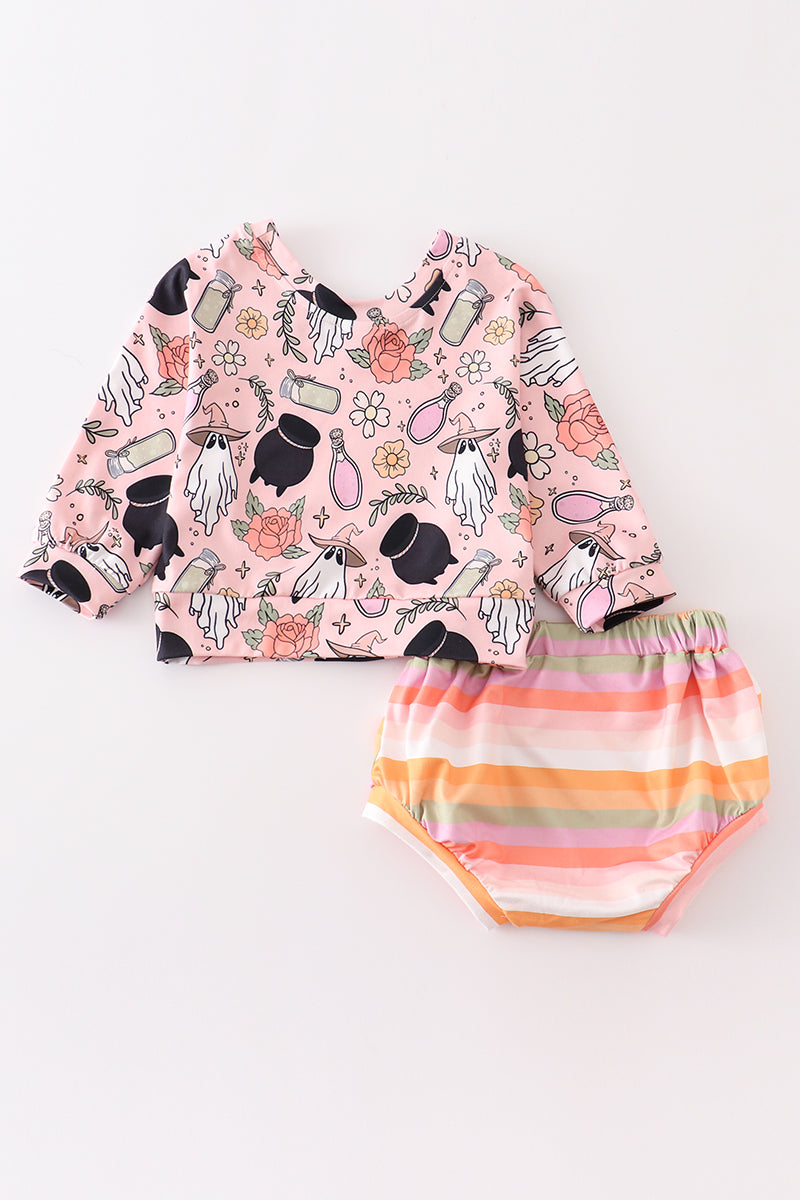 Halloween ghost floral print baby set