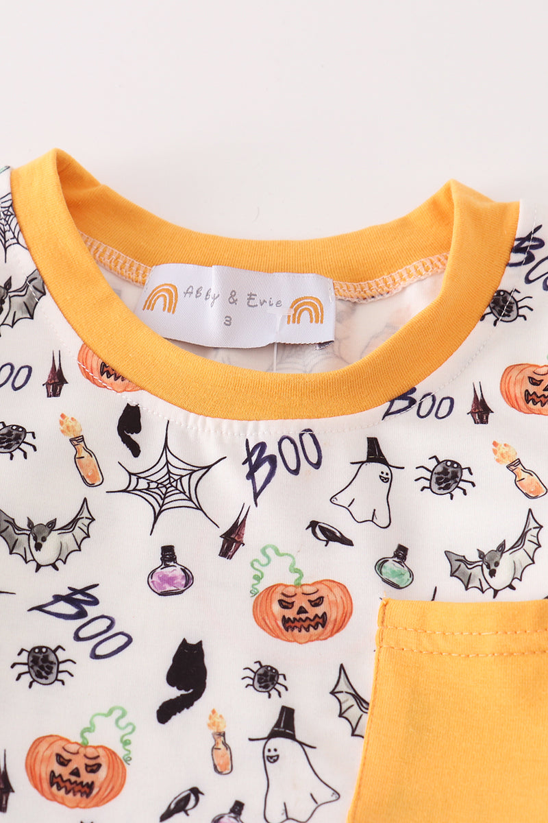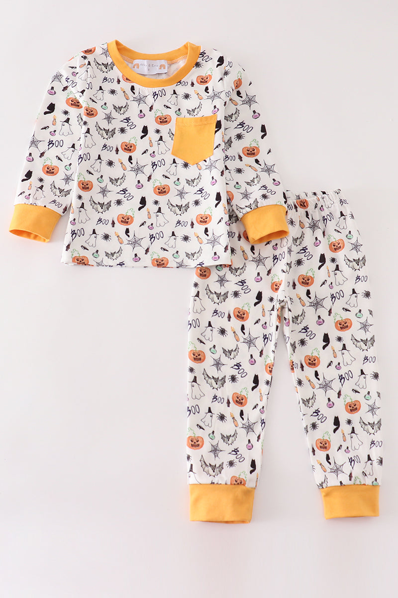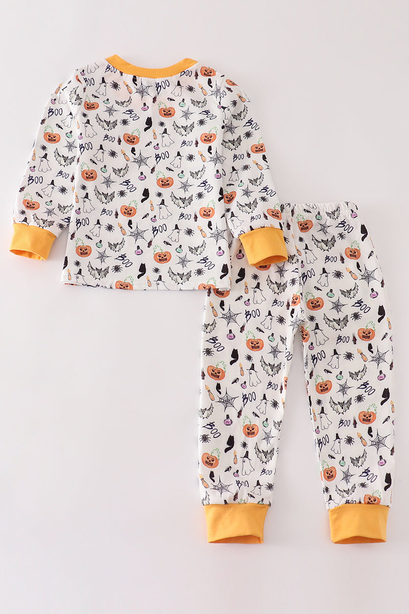 Get your little one ready for Halloween with this fun and spooky Halloween print pajama set for boys! Featuring a playful print and comfortable fit, this set is perfect for a cozy night of trick-or-treating.
