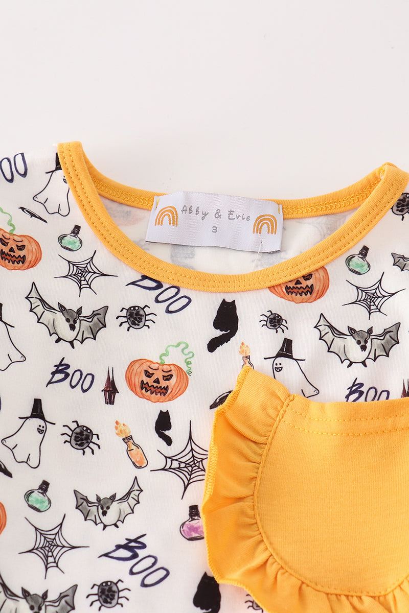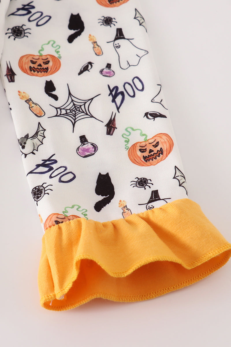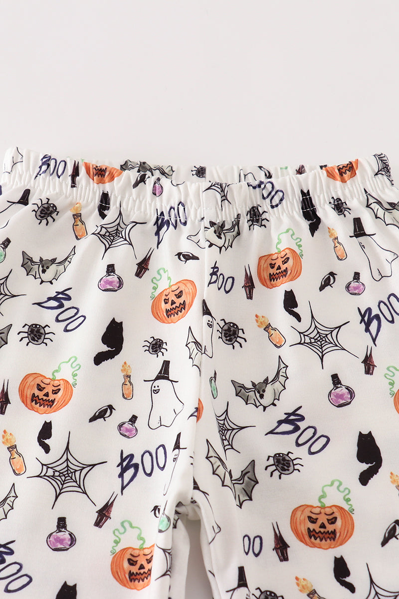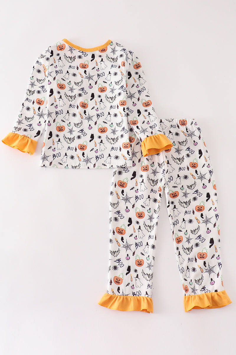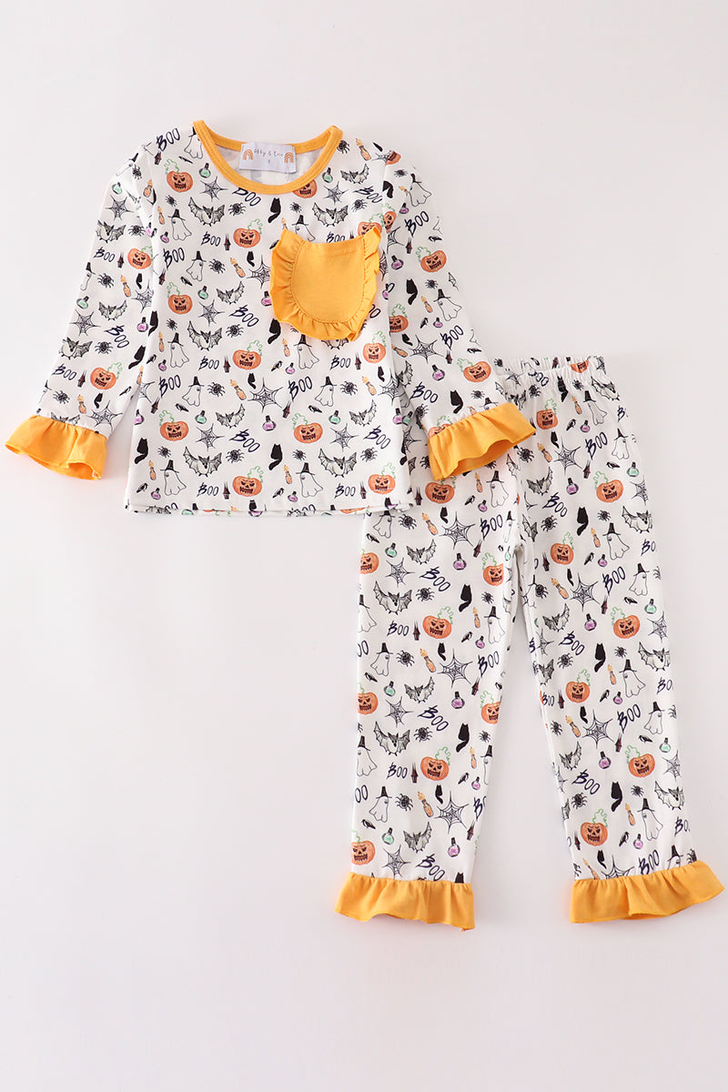 Get ready to spook up your bedtime with our Halloween print girl pajamas set! Featuring fun and playful designs, this set is perfect for a night of trick or treating or a cozy movie marathon. Made with soft and comfortable fabric, your little one will have a boo-tiful sleep in these pajamas. (Ghouls and gals approved!)