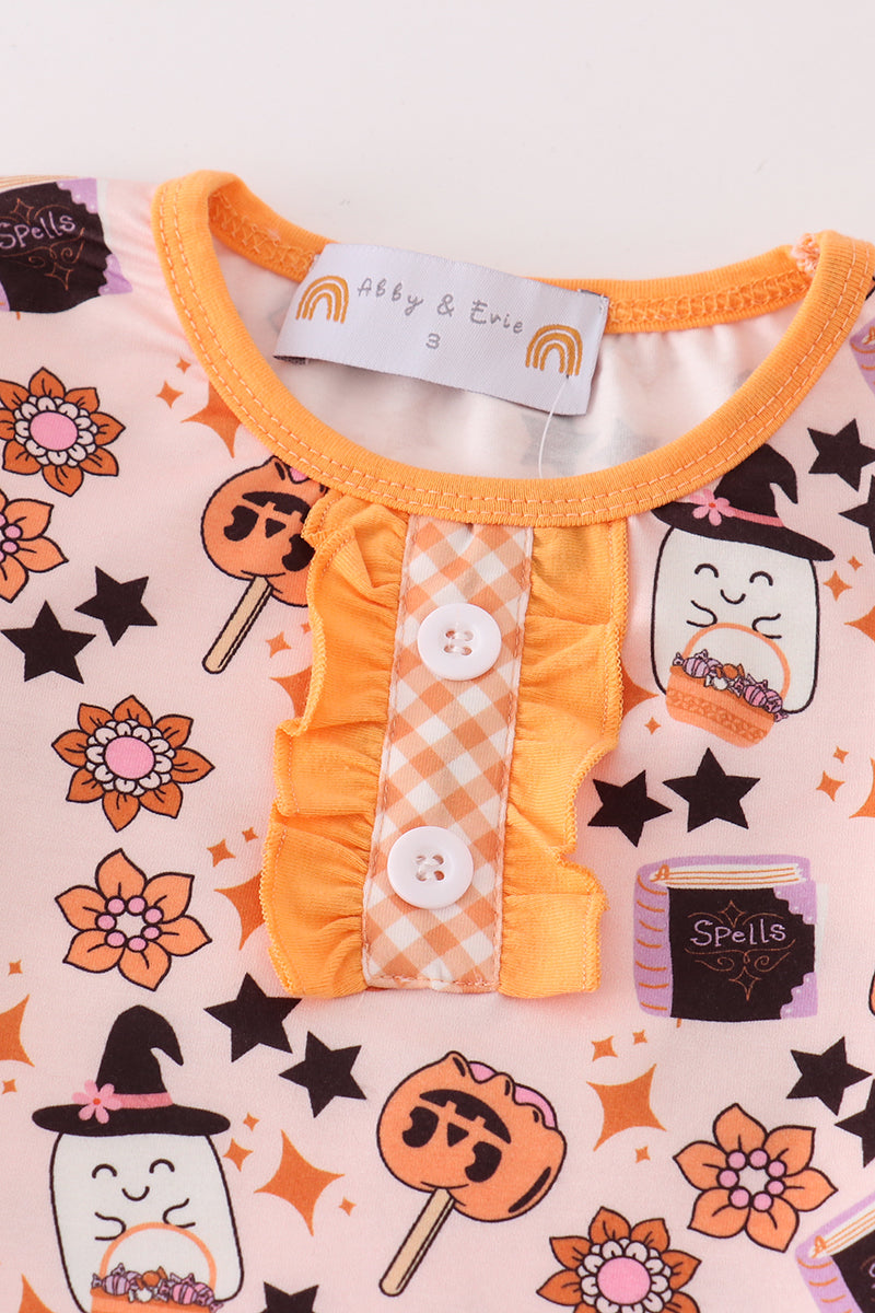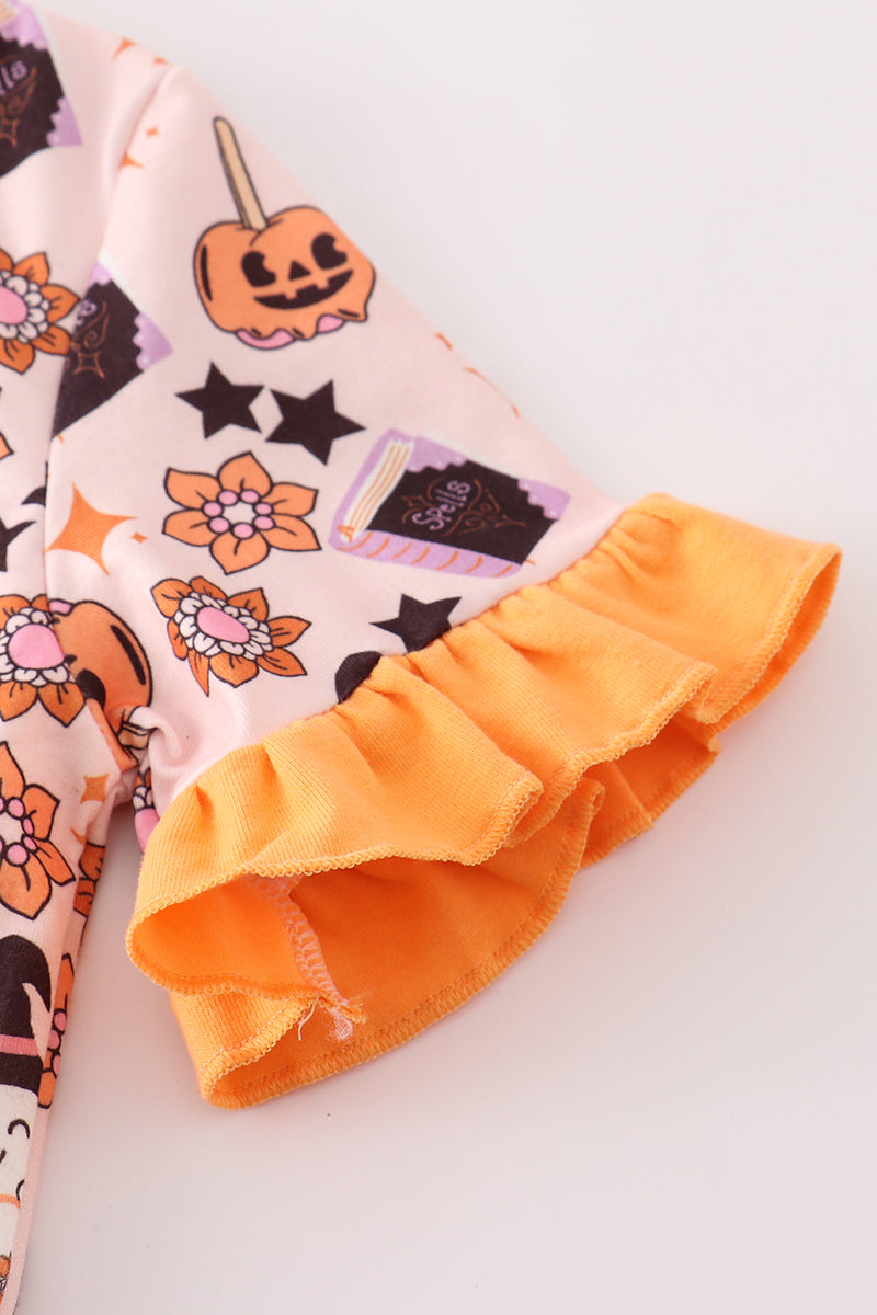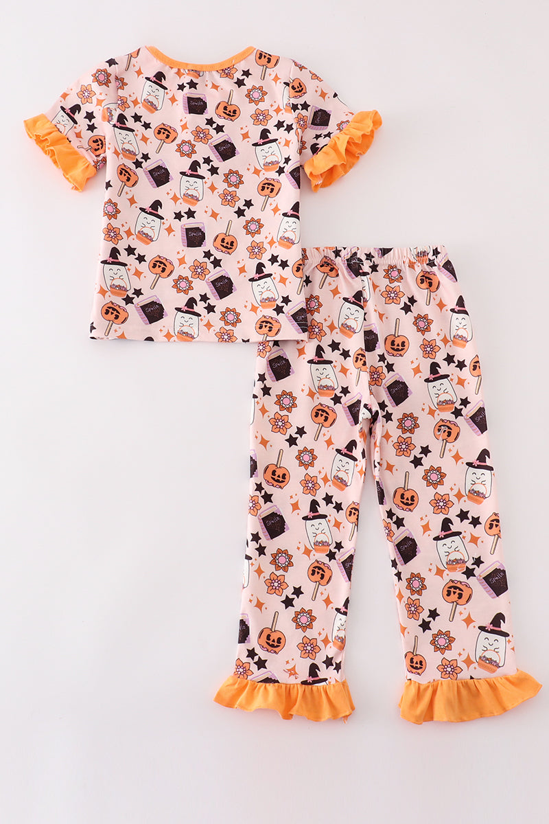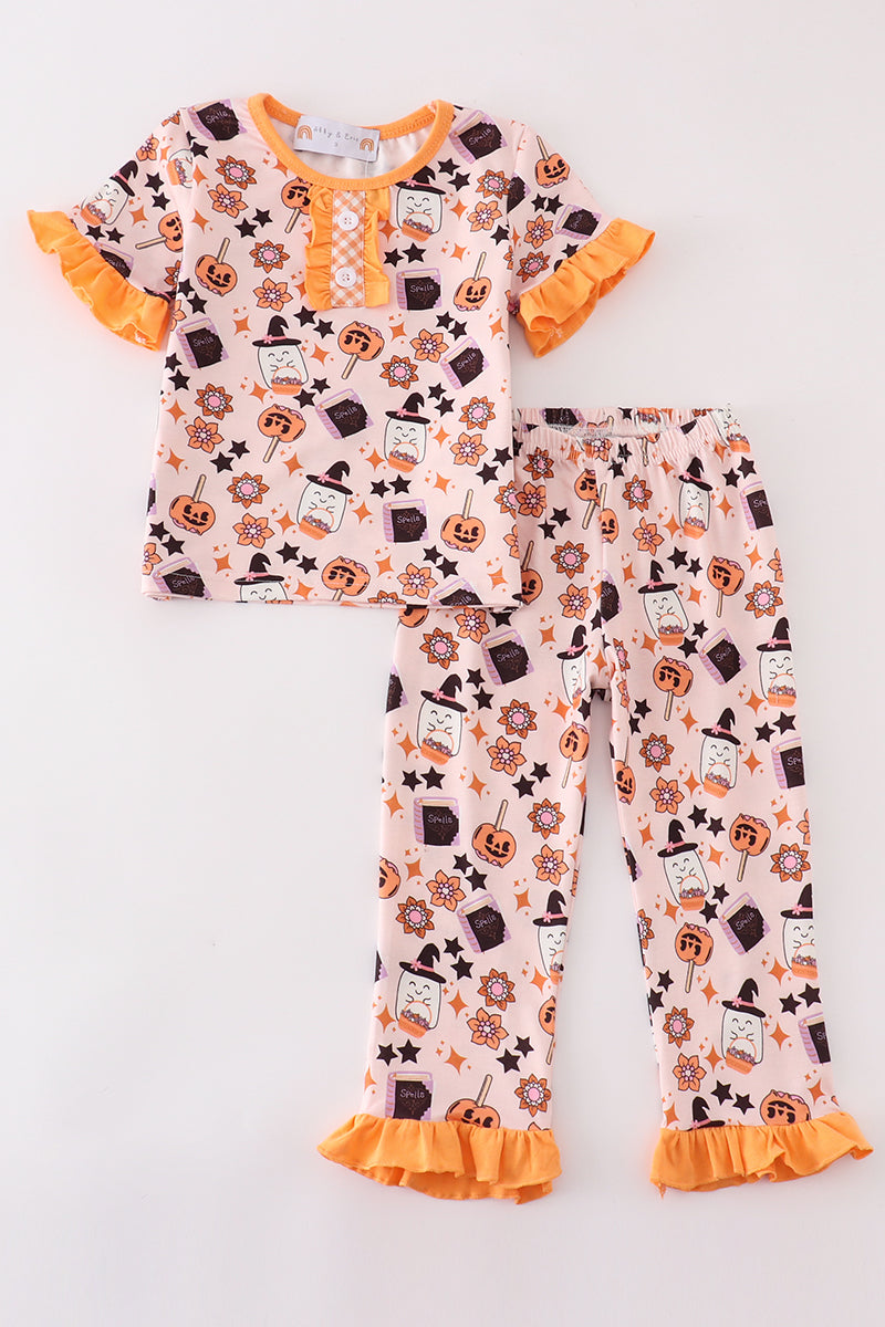 Get ready to spook and slumber in style with our Happy Halloween girl pajamas set! Made for comfort and cuteness, this set is perfect for your little one's night of trick-or-treating. With a playful and cozy design, they'll have a frightfully fun time in these pajamas!