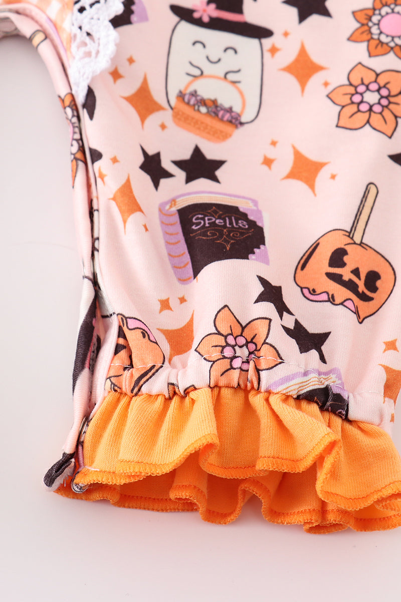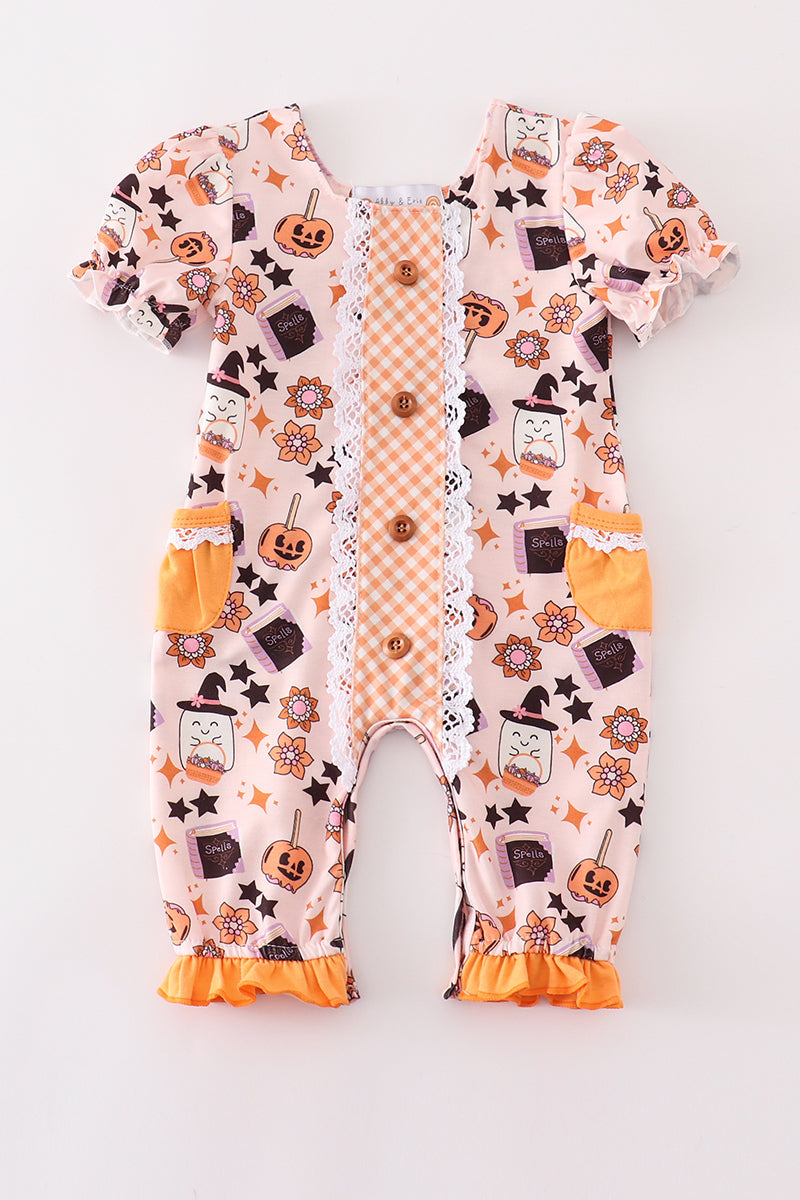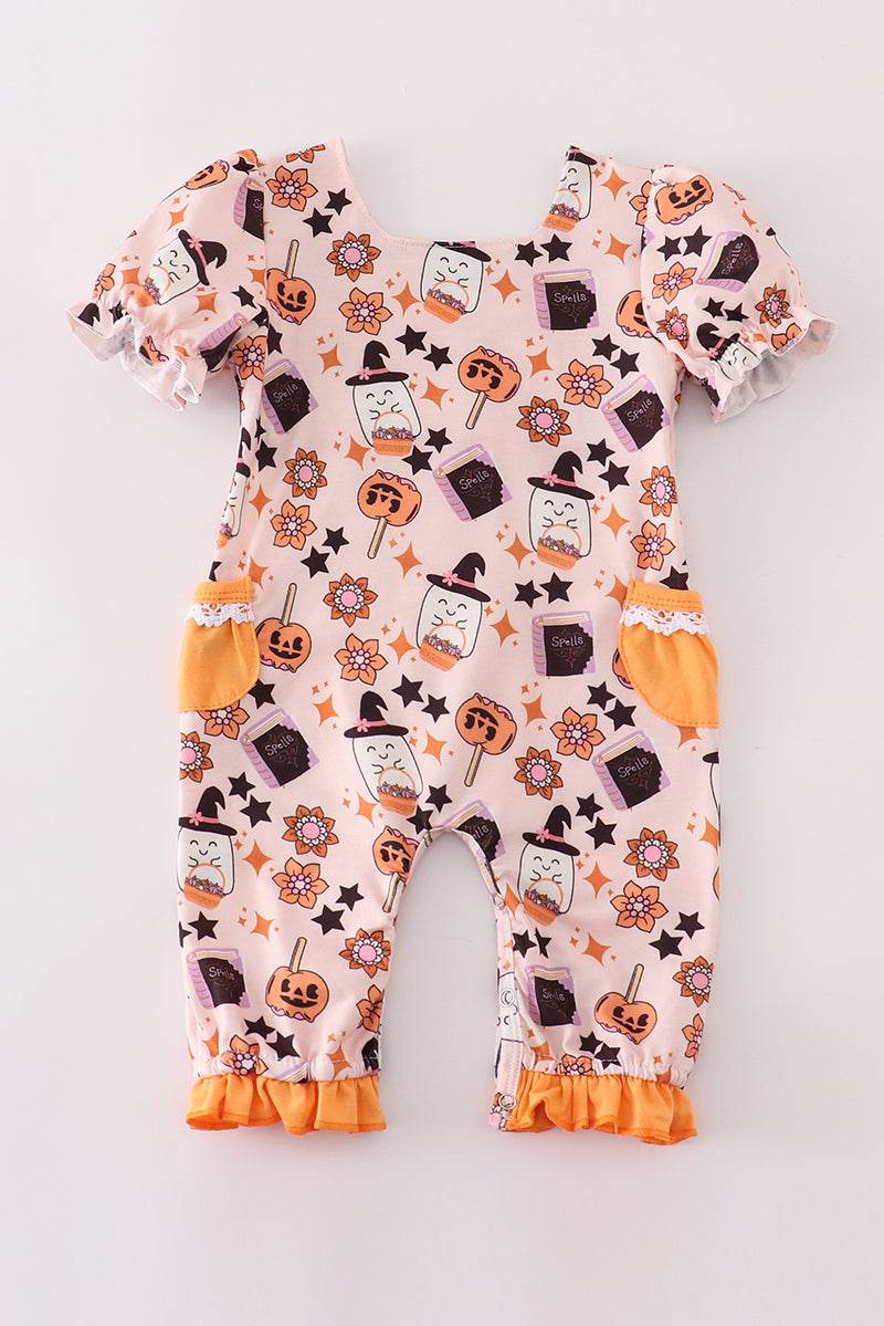Get ready for the spookiest season in style with our Happy Halloween girl romper! This adorable romper will have your little one looking festive and cute. Perfect for trick-or-treating or Halloween parties, this romper is made with high-quality material to ensure comfort and durability. Don't miss out on the fun, grab your Happy Halloween romper today!