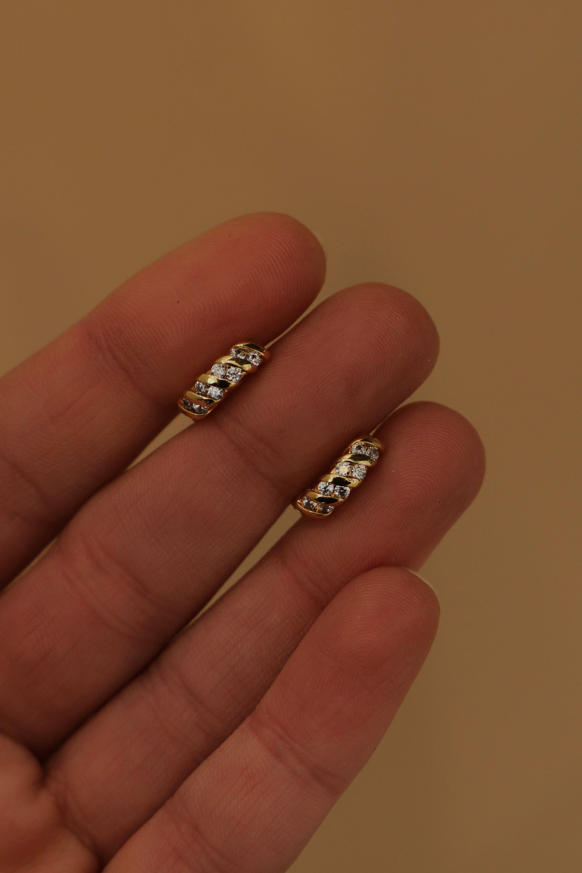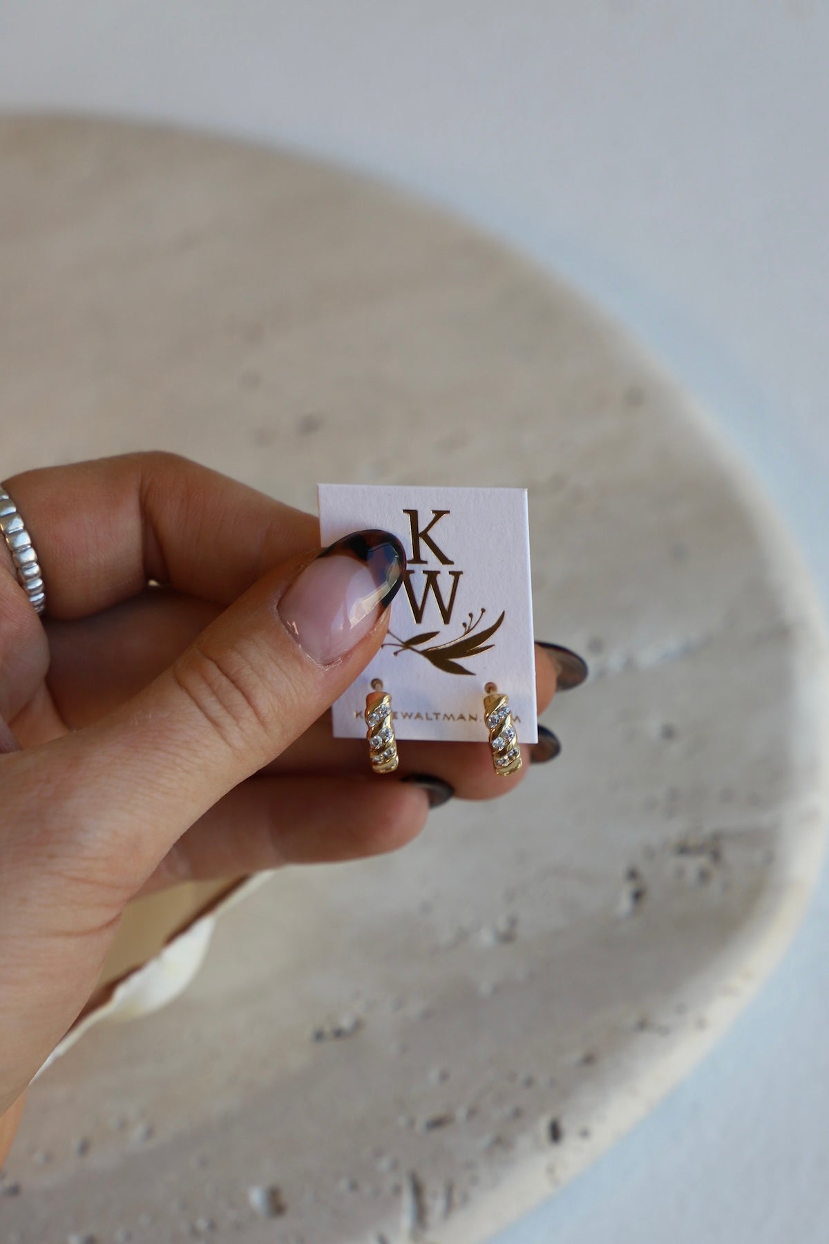 Elevate your style with our Jessie CZ Rope Huggie Hoops, showcasing a stunning interplay of exquisite rope and CZ elements. Enhance your look with these earrings hosting just the right amount of sparkle in a timeless design.