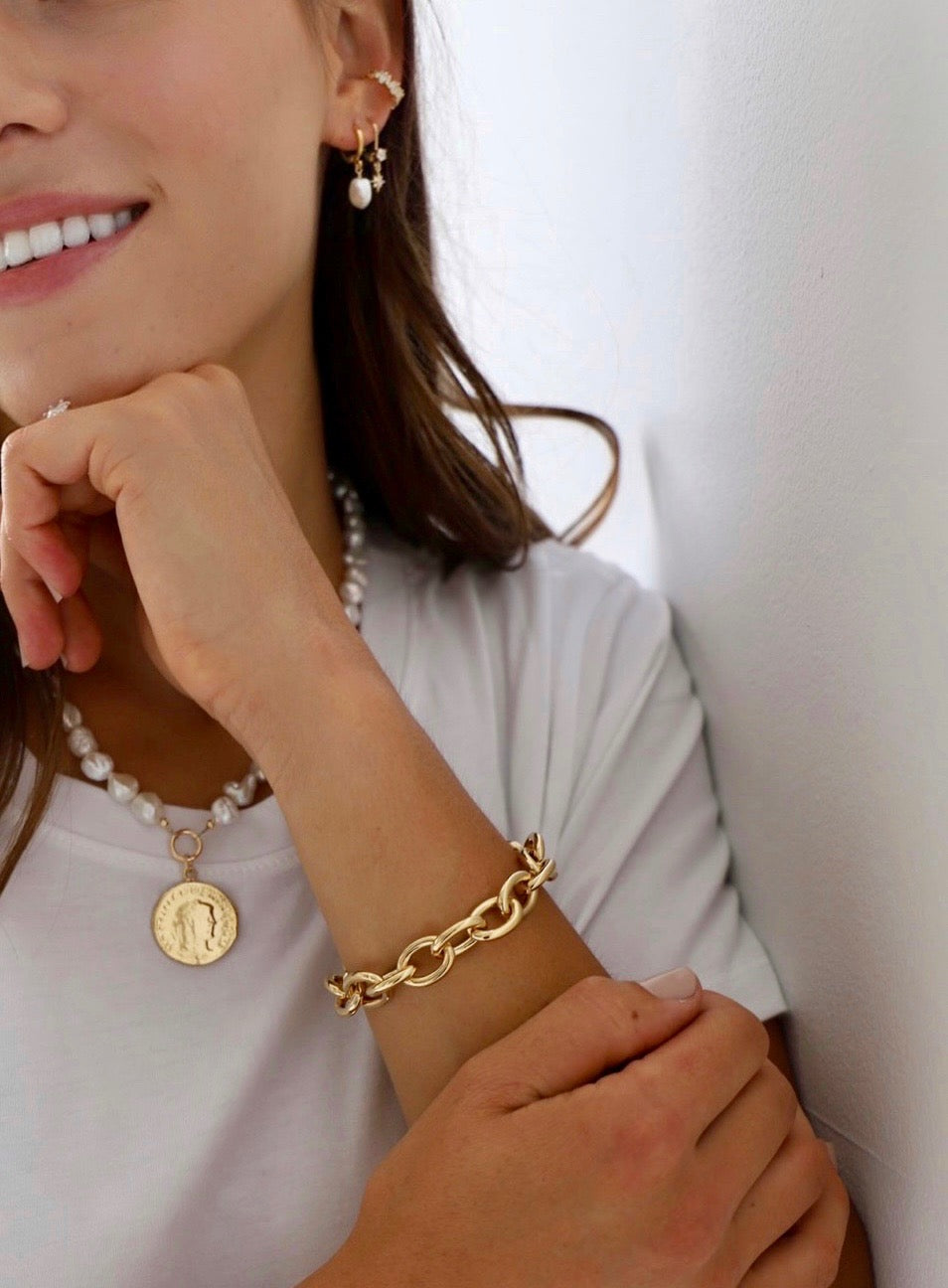 Materials: freshwater pearl on a gold plated hoop