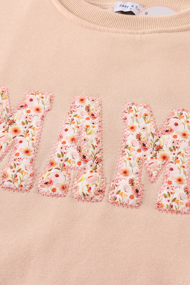 Khaki MAMA&MINI applique fleece mom&me sweatshirt