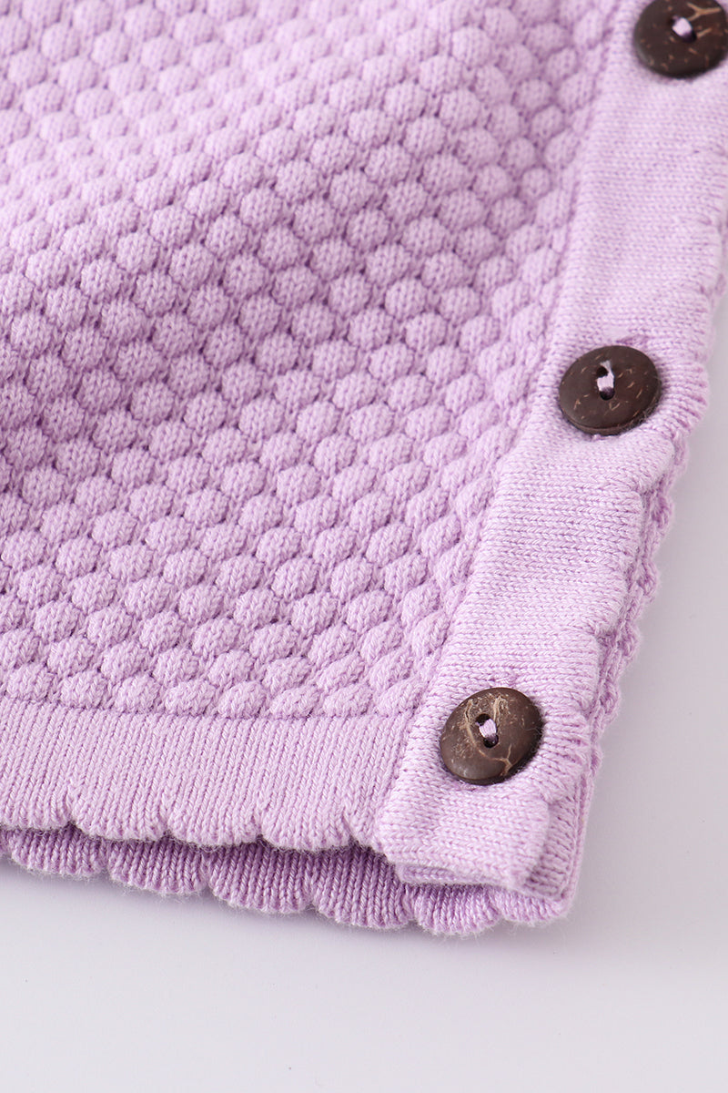 This cozy lilac sweater is the perfect way to keep your baby snug and stylish this winter. Crafted with soft fabric and cute buttons, this sweater is sure to be a go-to favorite! Keep your lil one feeling comfortable and looking cute with the Lilac buttons sweater-baby!