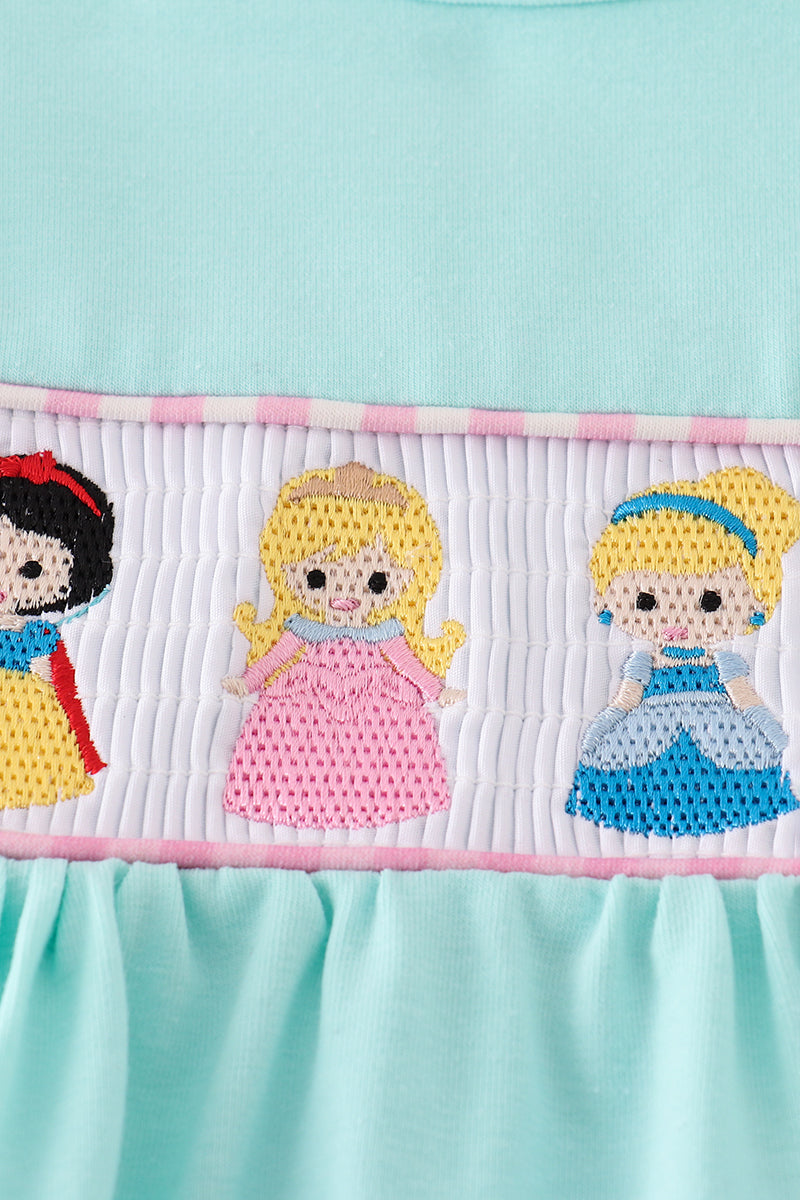 Mint princess embroidery gingham ruffle dress