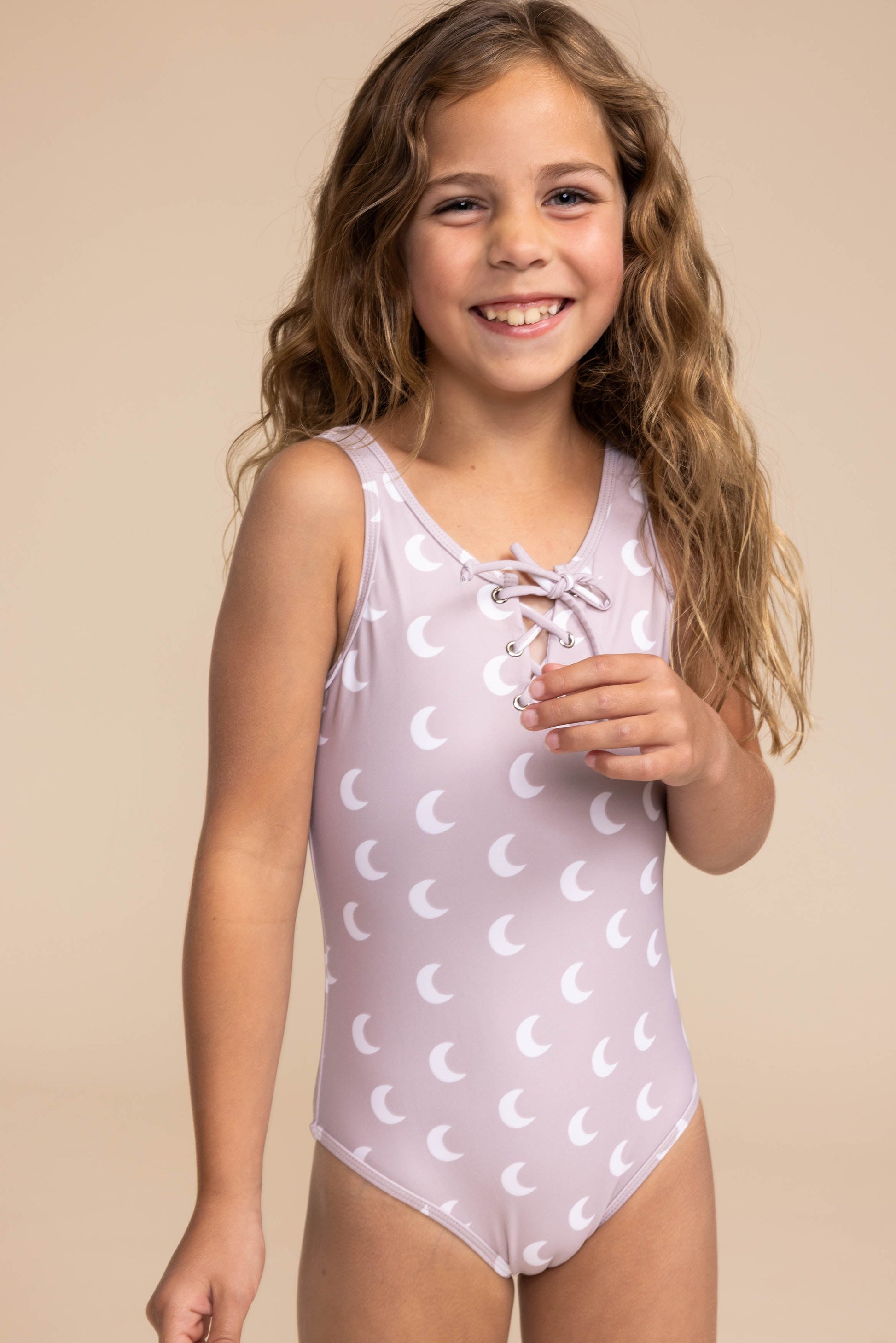 Make a splash with this Moon Print Tie One Piece Girl Swimsuit! Featuring a fun moon print and a trendy tie design, this swimsuit is perfect for your little one to rock at the pool or beach. Stylish and comfortable, this one piece is sure to be a hit!