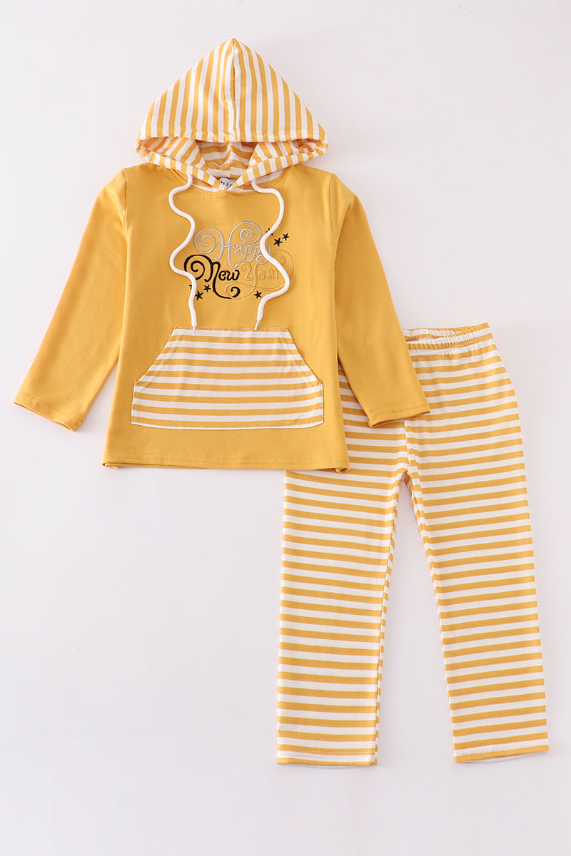 Start the new year off in style with our Mustard Happy New Year Embroidery Boy Hoodie Set! This playful and quirky set is perfect for any little boy who doesn't take himself too seriously. Stay warm and fashionable with this unique addition to your wardrobe. (Limited quantities available - get yours now!)