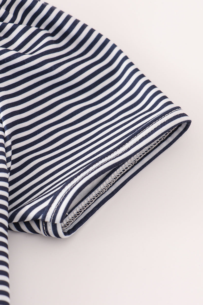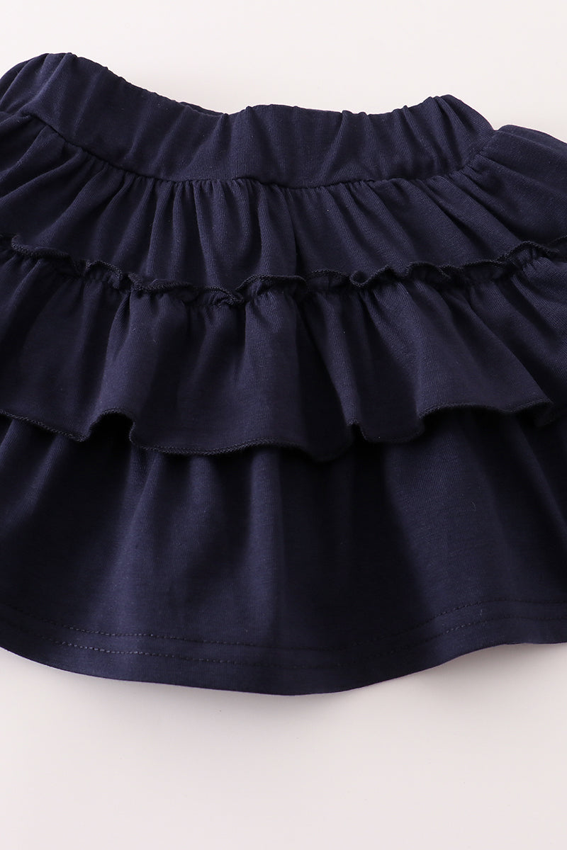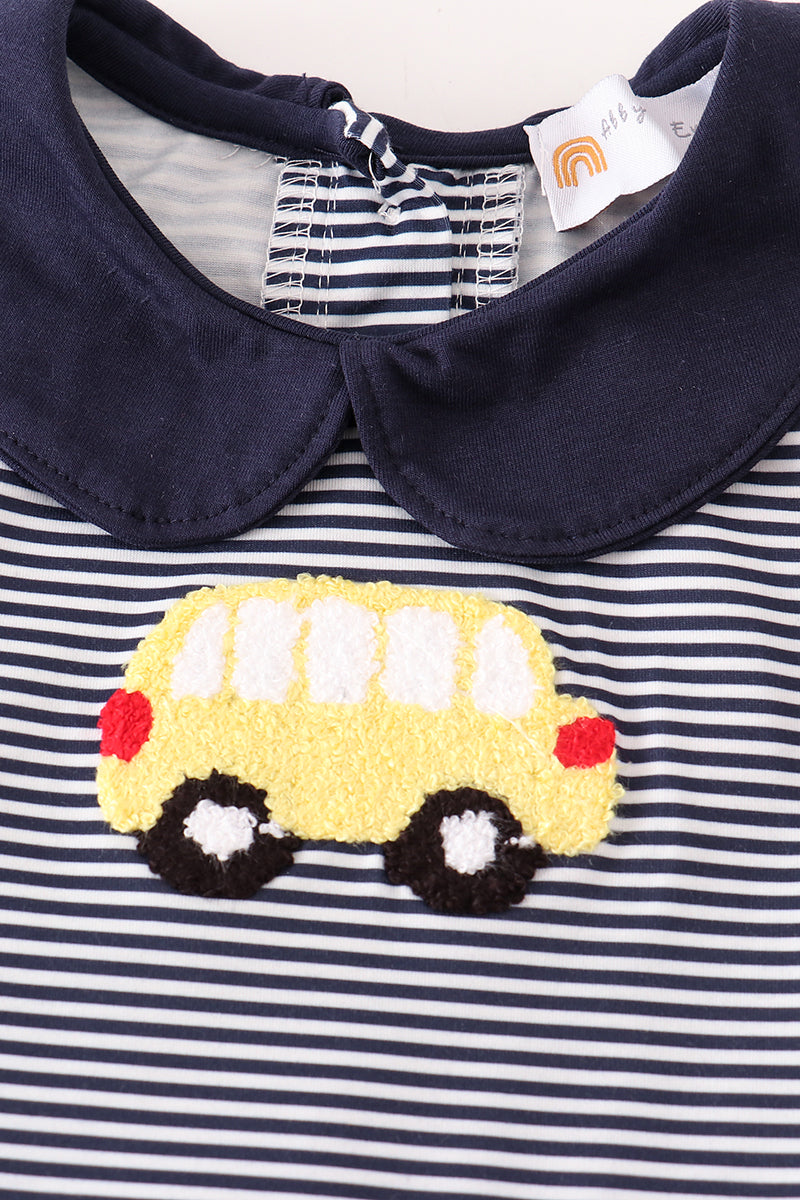 Hop on board the trend train with our Navy Bus French Knot Skort Set! This playful and quirky set features a unique navy bus design and a stylish skort bottom. Perfect for those who don't take themselves too seriously and want to have some fun with their fashion. (All aboard the fashion bus!)