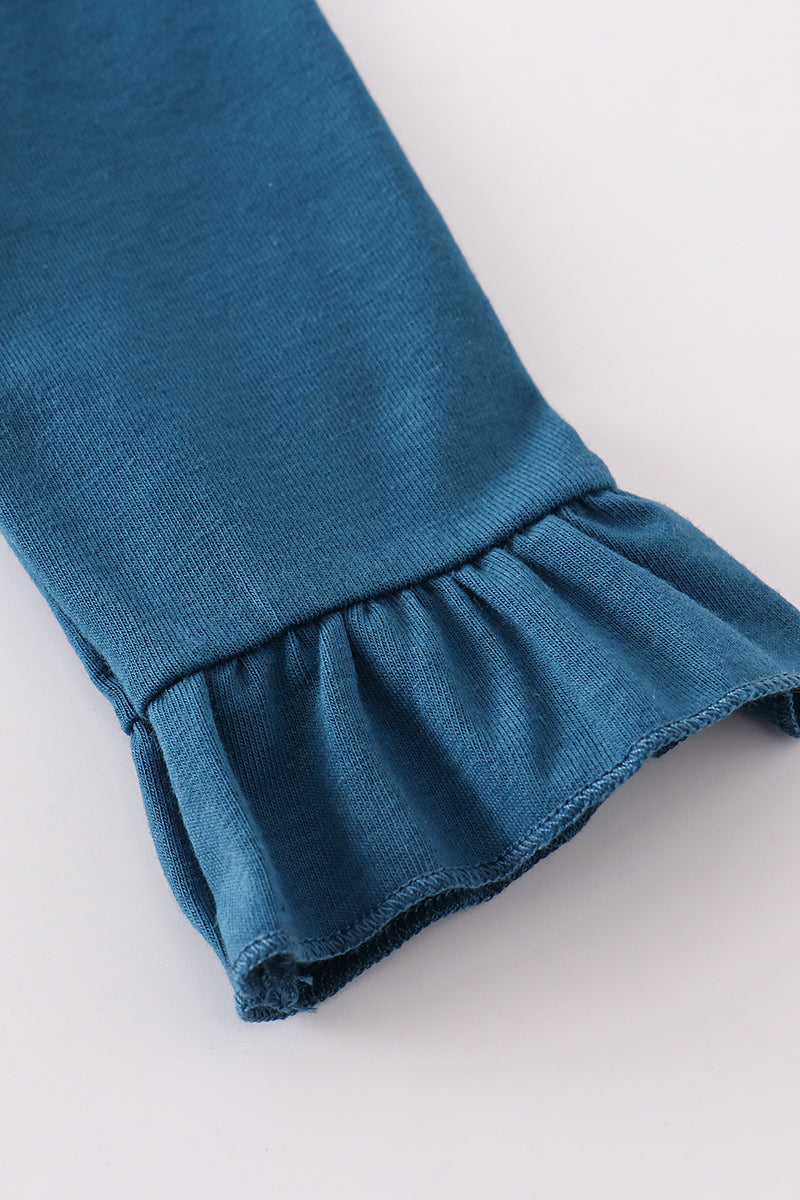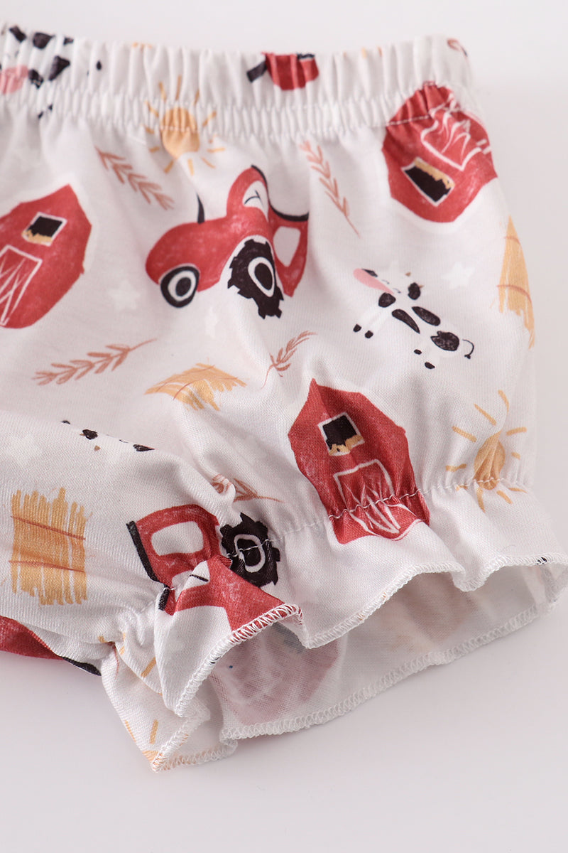 Navy farm french knot girl bloomer set