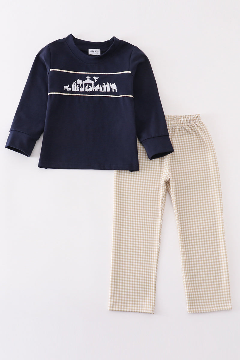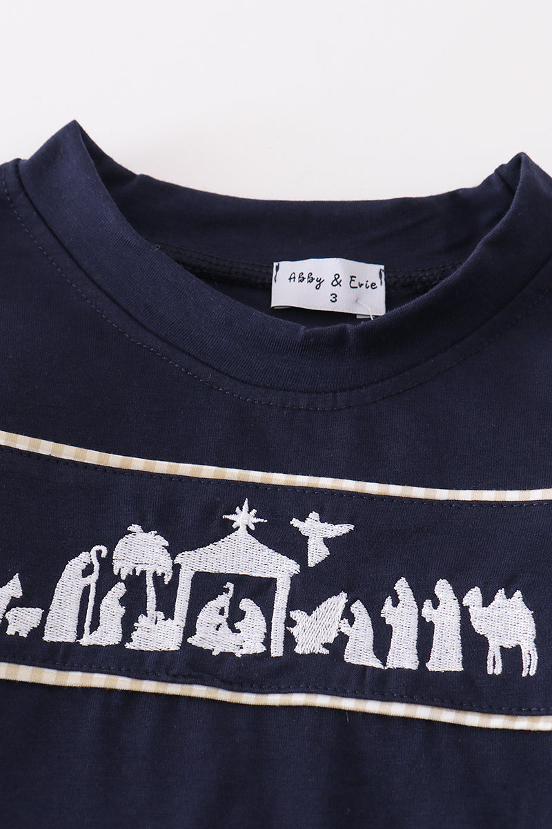 It's a match made in the holiday heavens - this boy set features a navy nativity embroidery that will make your little one the star of any nativity play!