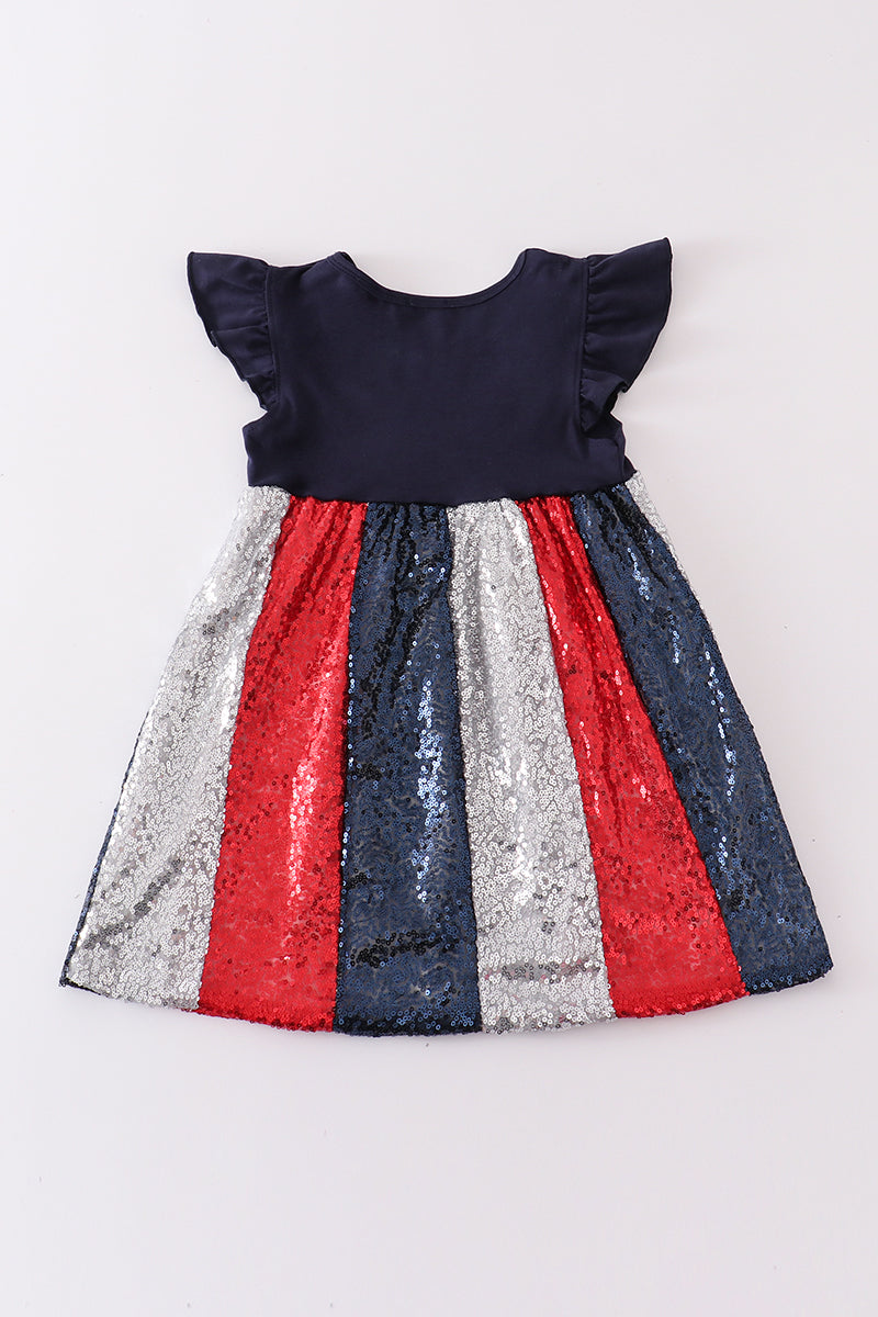 Navy Patriotic star sequin ruffle dress