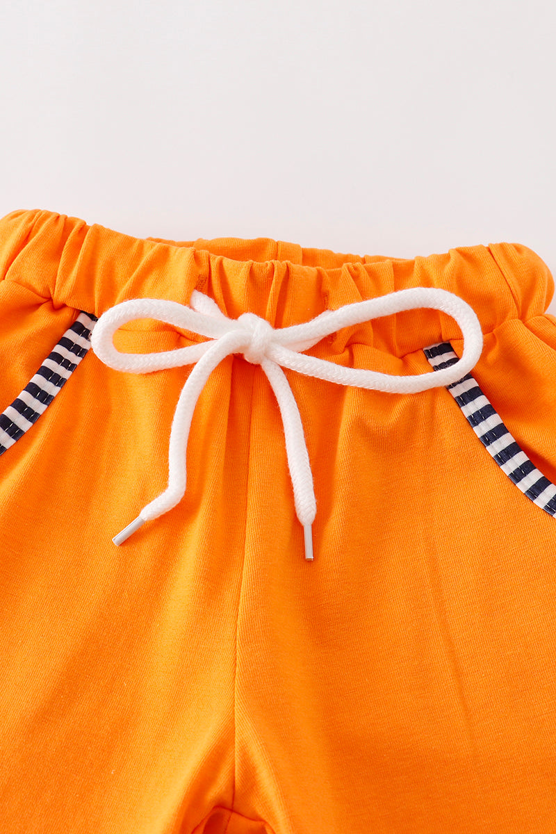 Get your little one ready for game day with our Navy WAR EAGLE embroidery stripe boy set! Made with high quality materials, this set features a playful and unique design that will make your child stand out in the crowd. Perfect for any young sports fan, this set is a must-have for any game day outfit.