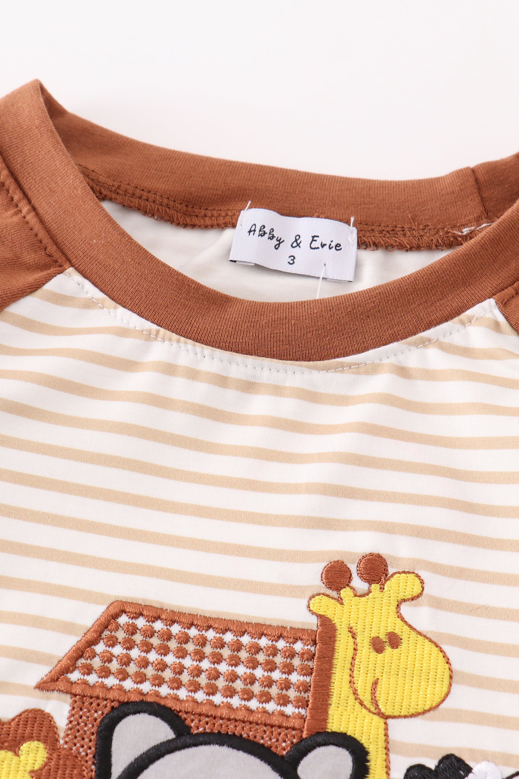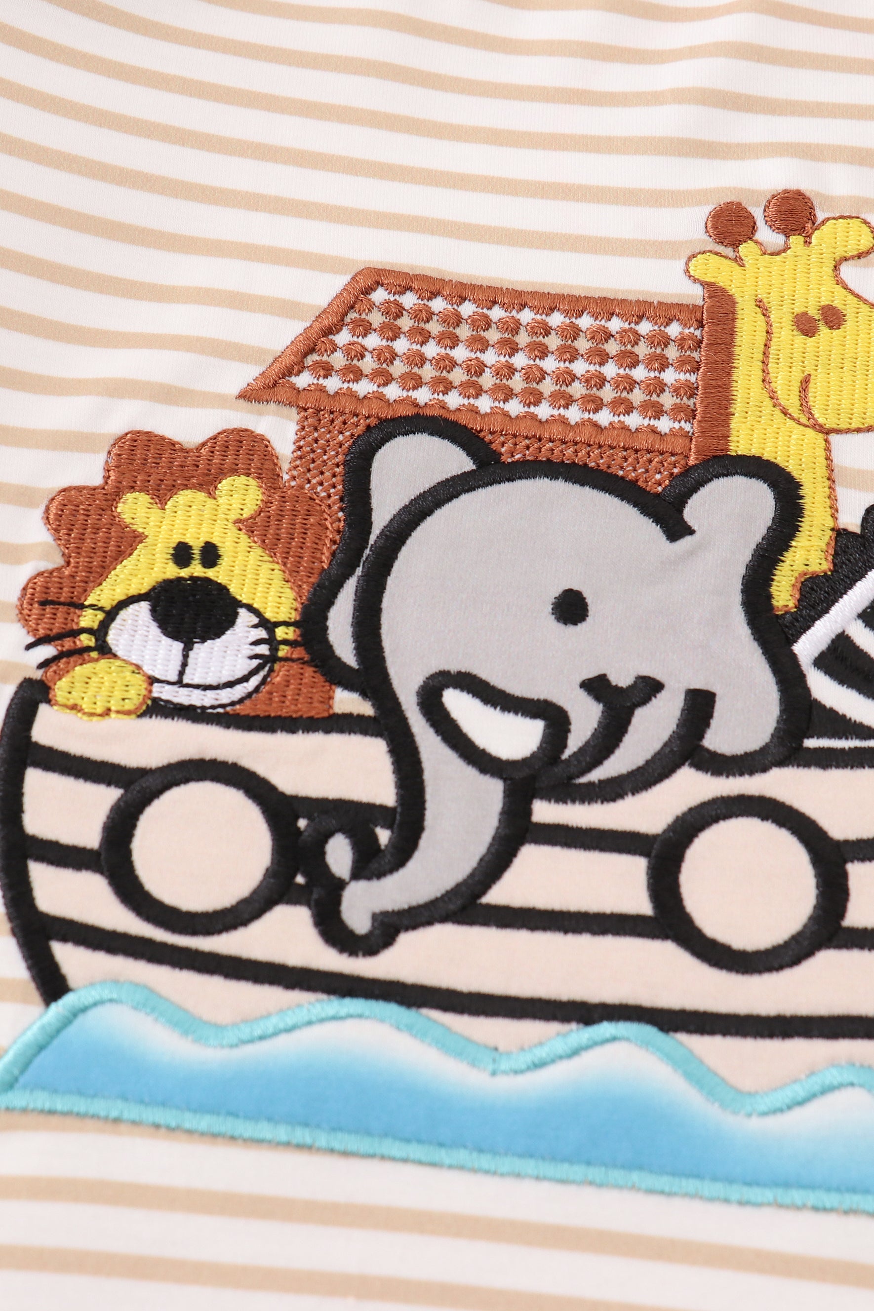 Noah's ark embroidery stripe boy top