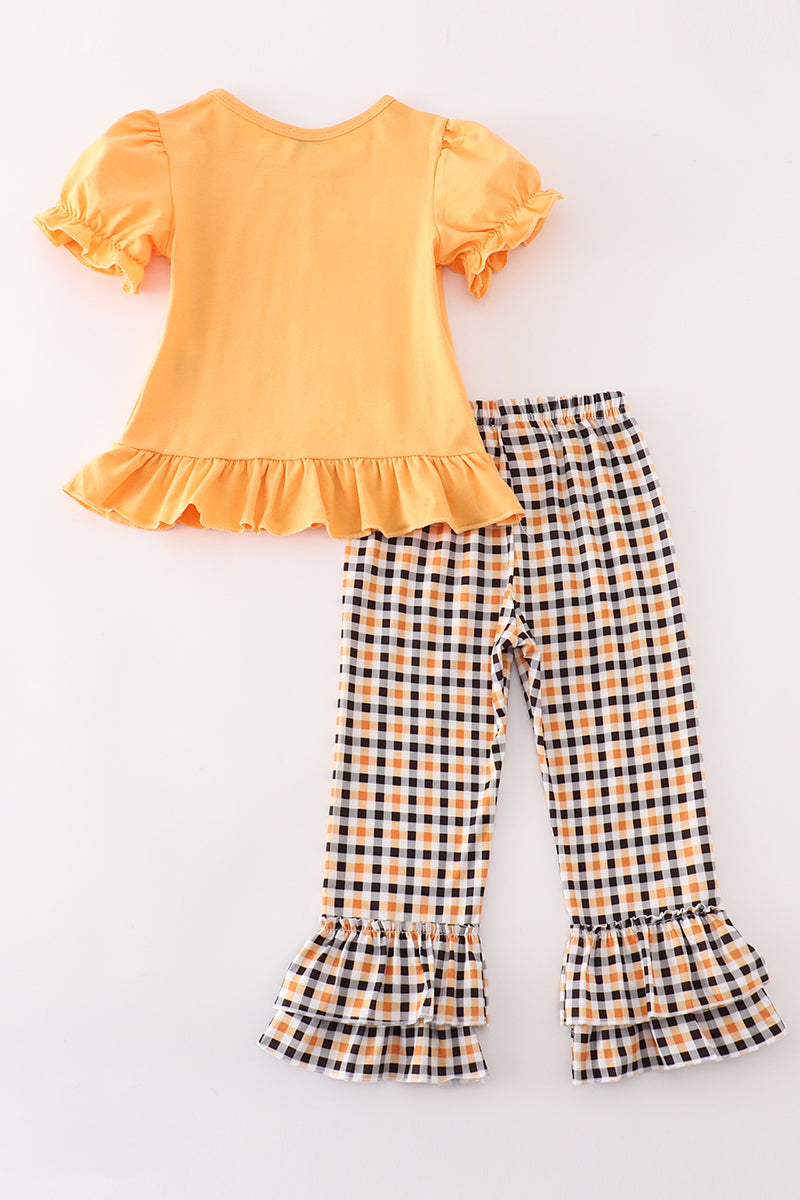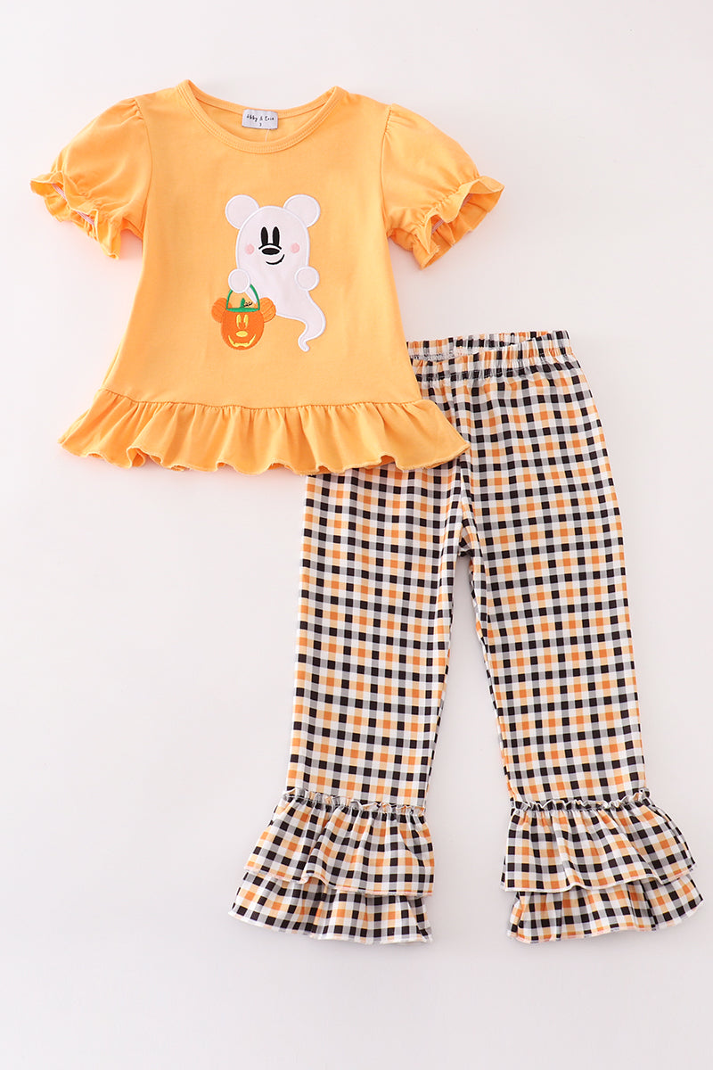 Dress up your little one in the cutest Halloween character with our Orange Ghost Applique Girl Set. Perfect for the spooky season, this set features a playful ghost applique on a vibrant orange top and coordinating leggings. The ultimate combination of style and fun!
