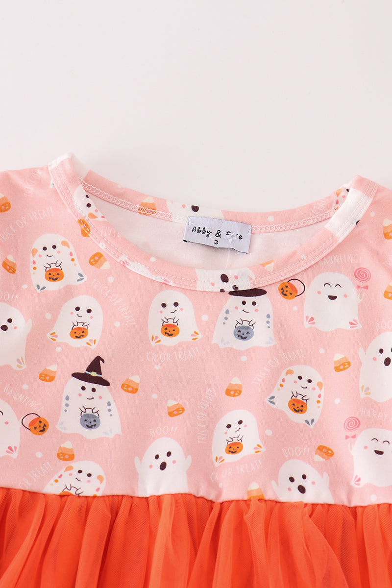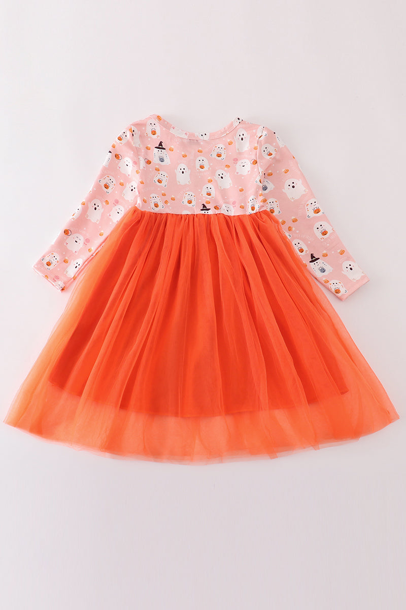 Get spooky cute this Halloween with our Orange Ghost Tutu Dress! This playful dress features a tulle tutu skirt and a ghost face applique. Perfect for any little trick-or-treater looking for a unique and adorable costume.