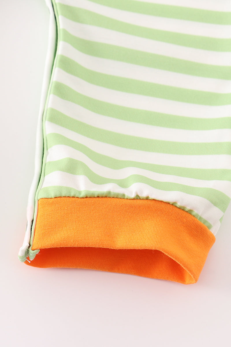 Get your little pumpkin ready for Halloween with our Orange BOO Applique Boy Romper! This playful romper features a bright orange pumpkin design with the word "BOO" appliqued on the front. Perfect for all your Halloween festivities! (No ghosts included!)