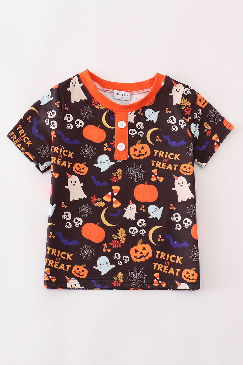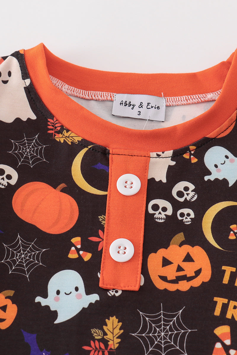 No tricks here, just treats with our Orange Halloween Ruffle Boy Top! This quirky and fun top features ruffles and a bold orange color, perfect for any spook-tacular occasion. With its playful design, your little one will stand out in style while staying comfortable.