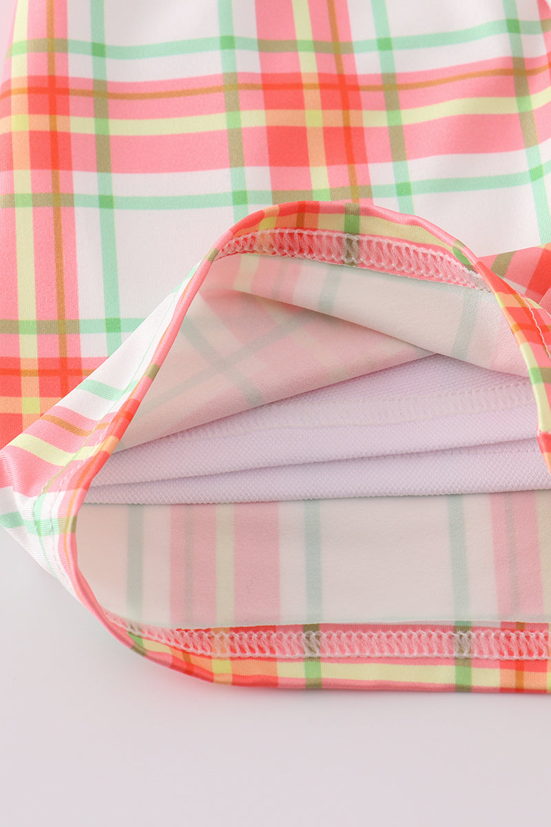 Make a splash this summer with these quirky and fun orange plaid crab embroidered swim trunks for boys. Stand out at the pool or beach with this unique and playful design. The perfect combination of style and comfort for your little one's water adventures. (Crab-tastic!)