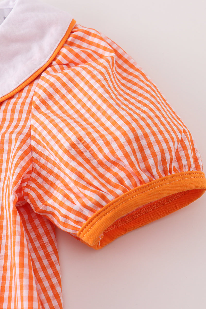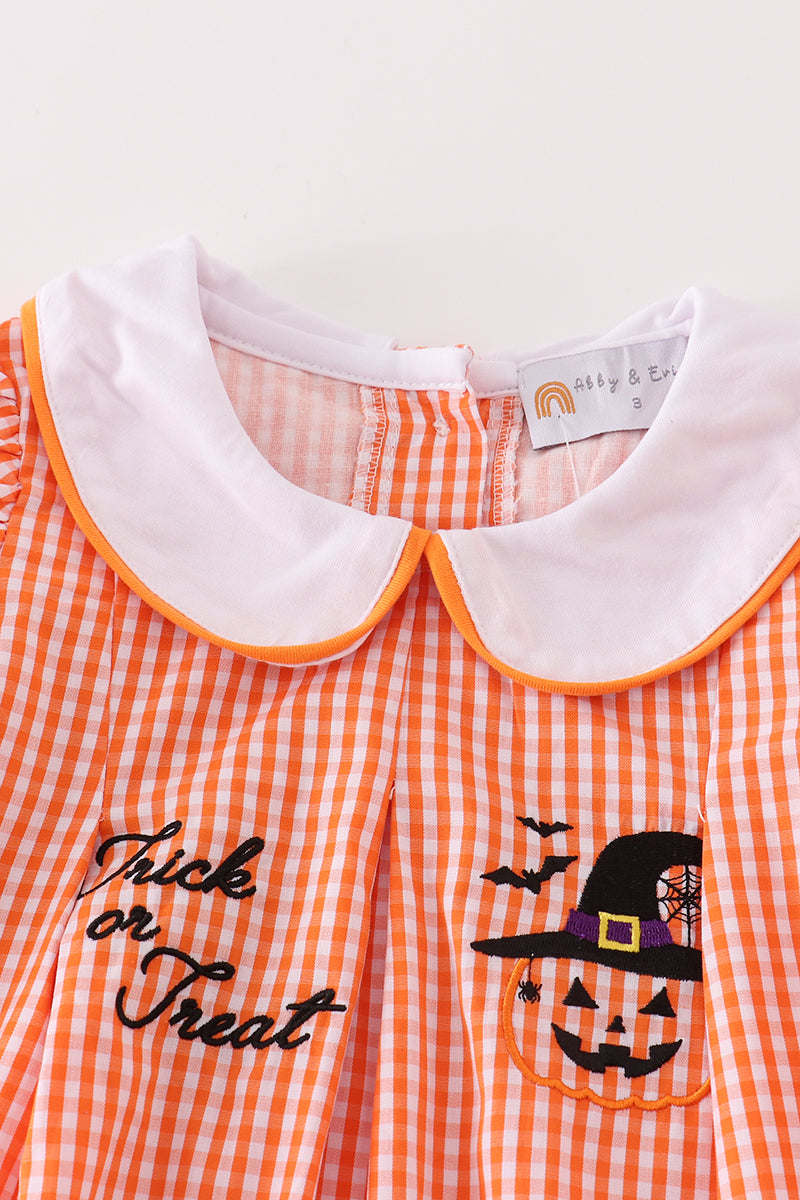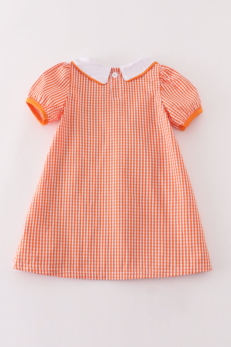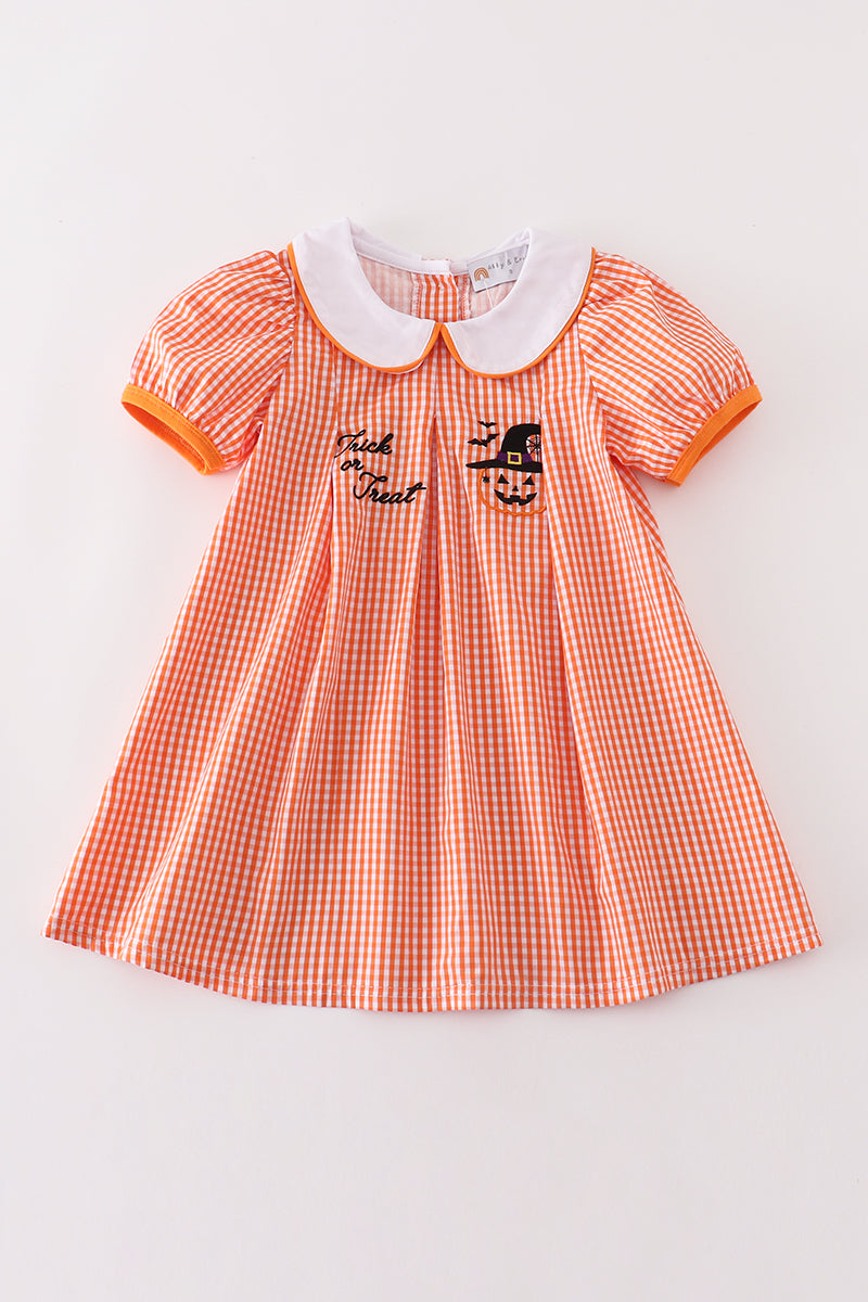 Get into the spirit of Halloween with our Orange Plaid Embroidery Dress! This playful dress features a bold orange plaid pattern adorned with fun and festive Halloween embroidery. Dress up for the occasion with this unique and quirky piece.