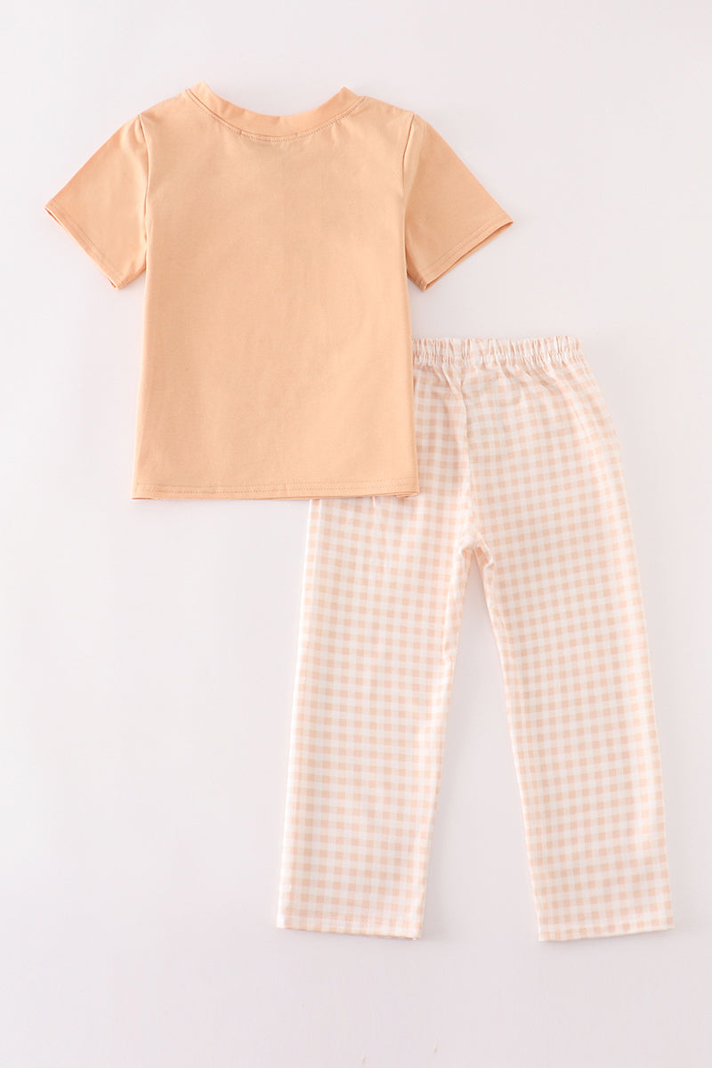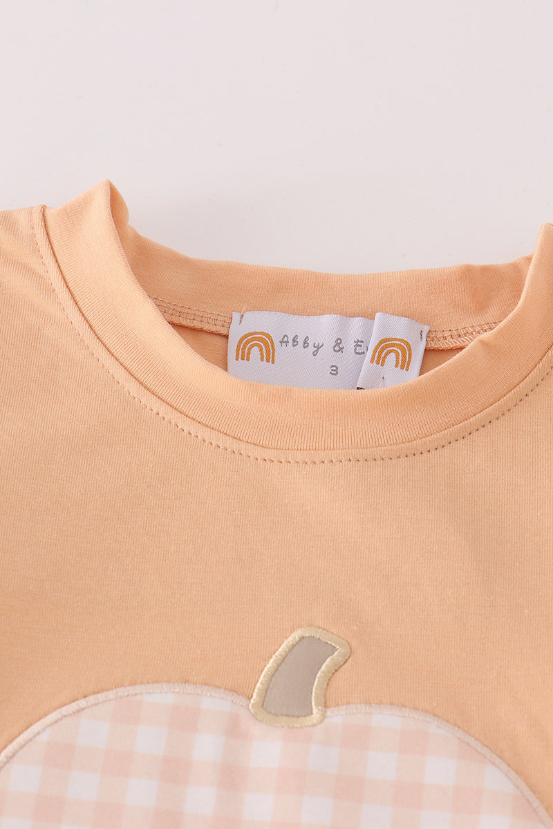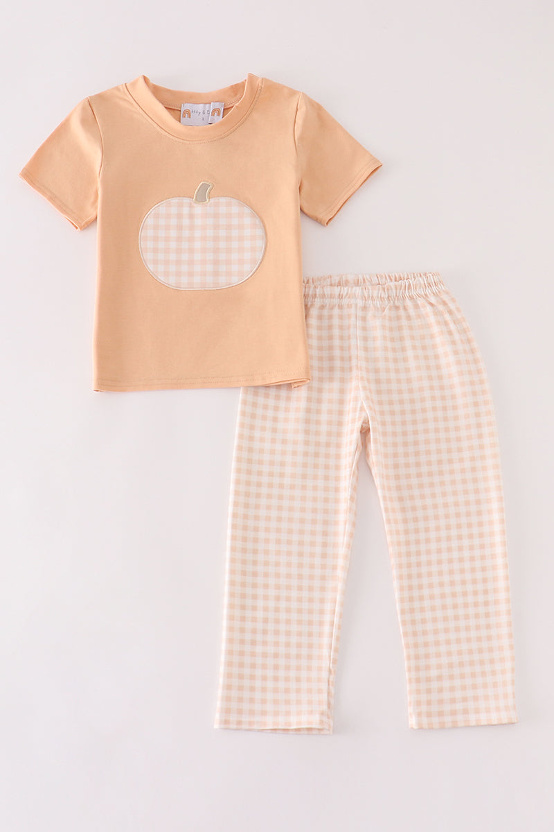 Orange pumpkin applique plaid boy set