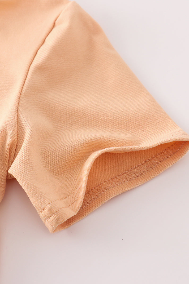 This adorable boy set features a playful orange pumpkin applique on a trendy plaid pattern. Perfect for fall festivities and spooktacular fun. Get your little one ready for the season in style. (Don't be basic, choose this unique set!)