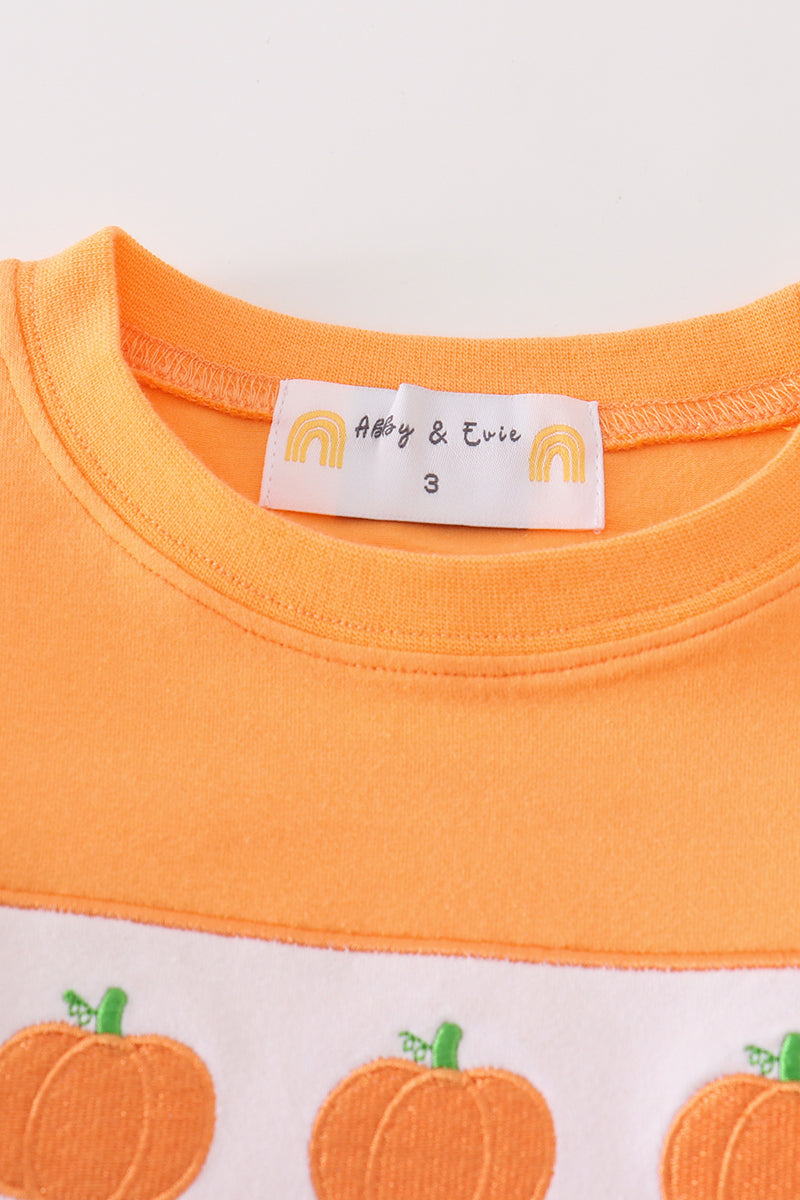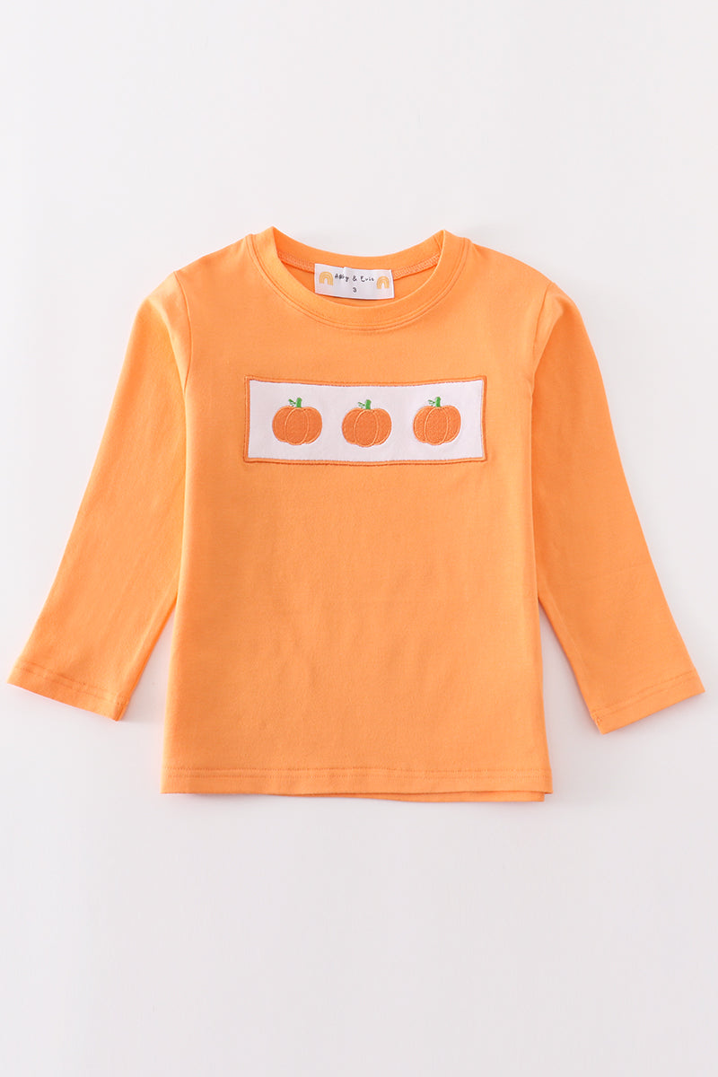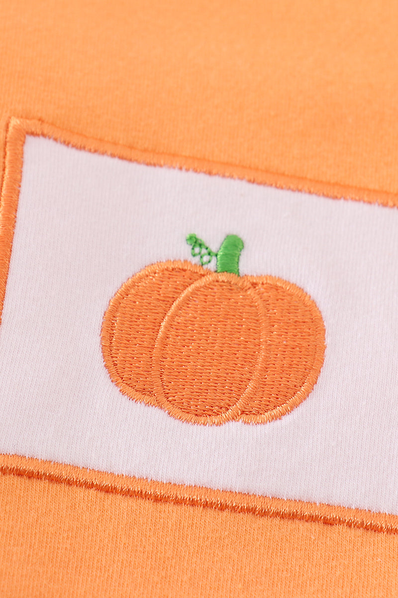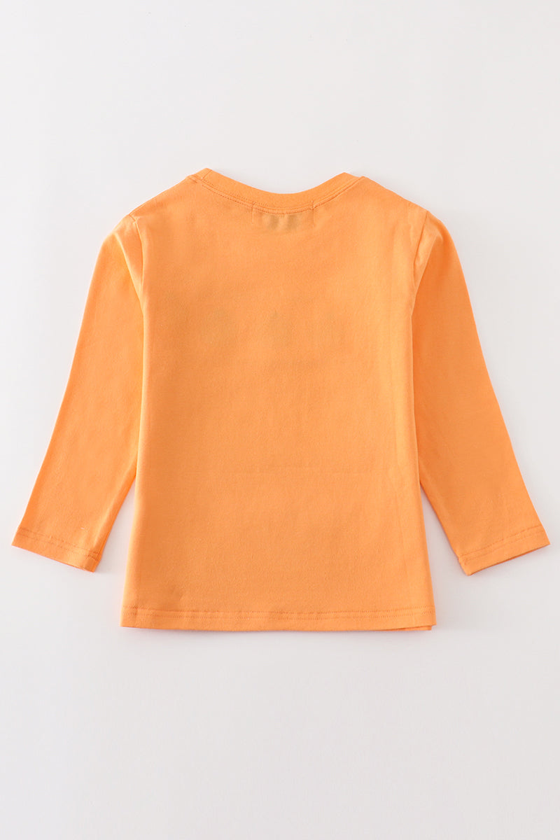 Premium Orange pumpkin embroidery top
