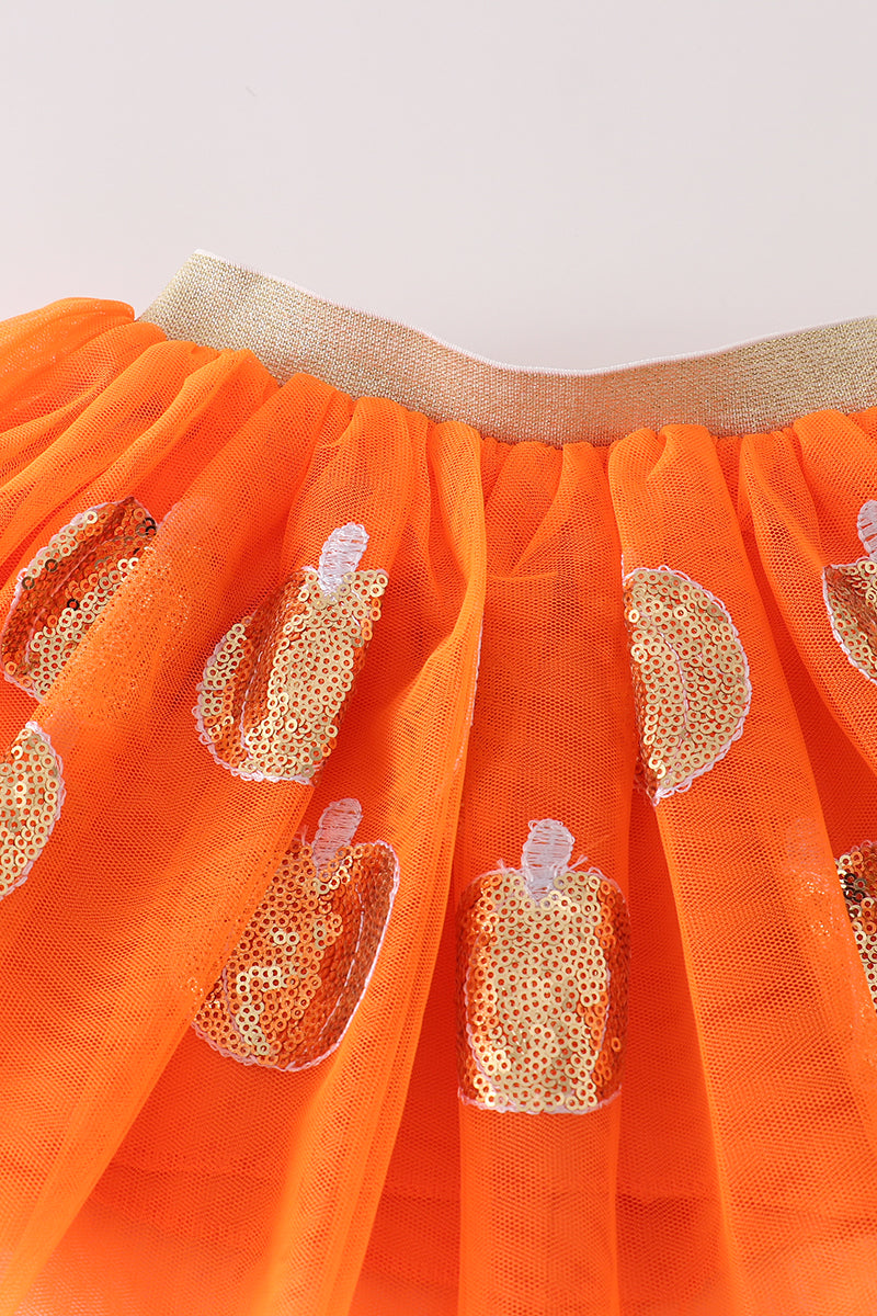 Add some sparkle to your pumpkin-themed Halloween costume with this orange pumpkin sequin tutu skirt. Perfect for adding a touch of glam to your outfit and standing out in a sea of basic costumes. Get ready to be the most stylish pumpkin in the patch!