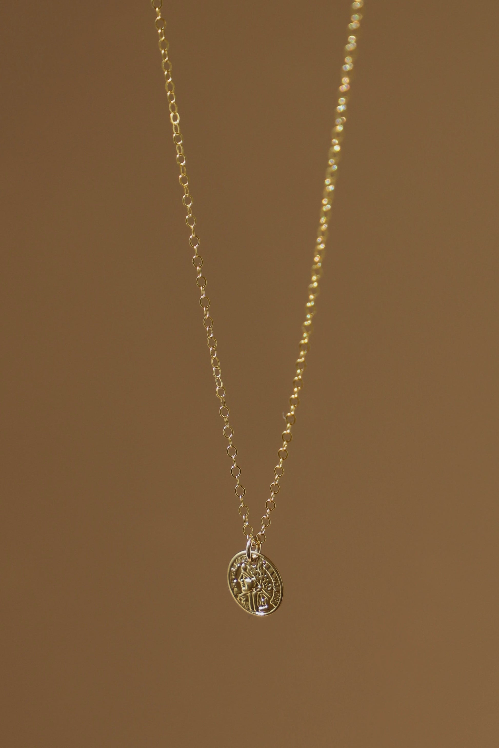 This petite coin necklace is perfect for adding subtle style and charm to any look. Crafted from an 18" chain and finished with a single petite coin, it’s a simple yet elegant way to spice up any wardrobe.