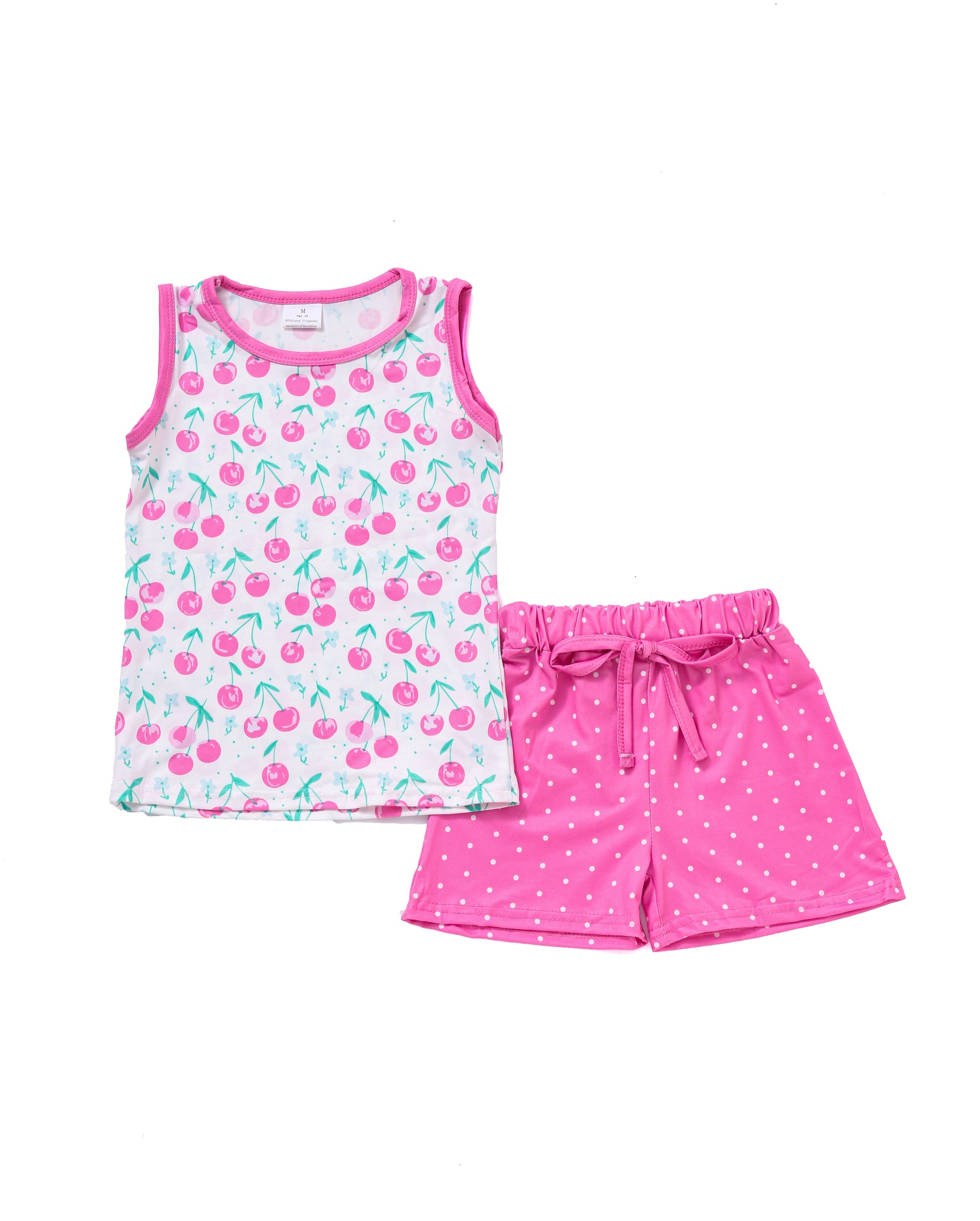 Get ready for some adorable summer style with our Pink Cherry Print Girl Shorts Set! The playful cherry print adds a fun pop of color to these comfy shorts, perfect for any adventure. Your little one will love the playful design, and you'll love how versatile and easy to wear this set is.