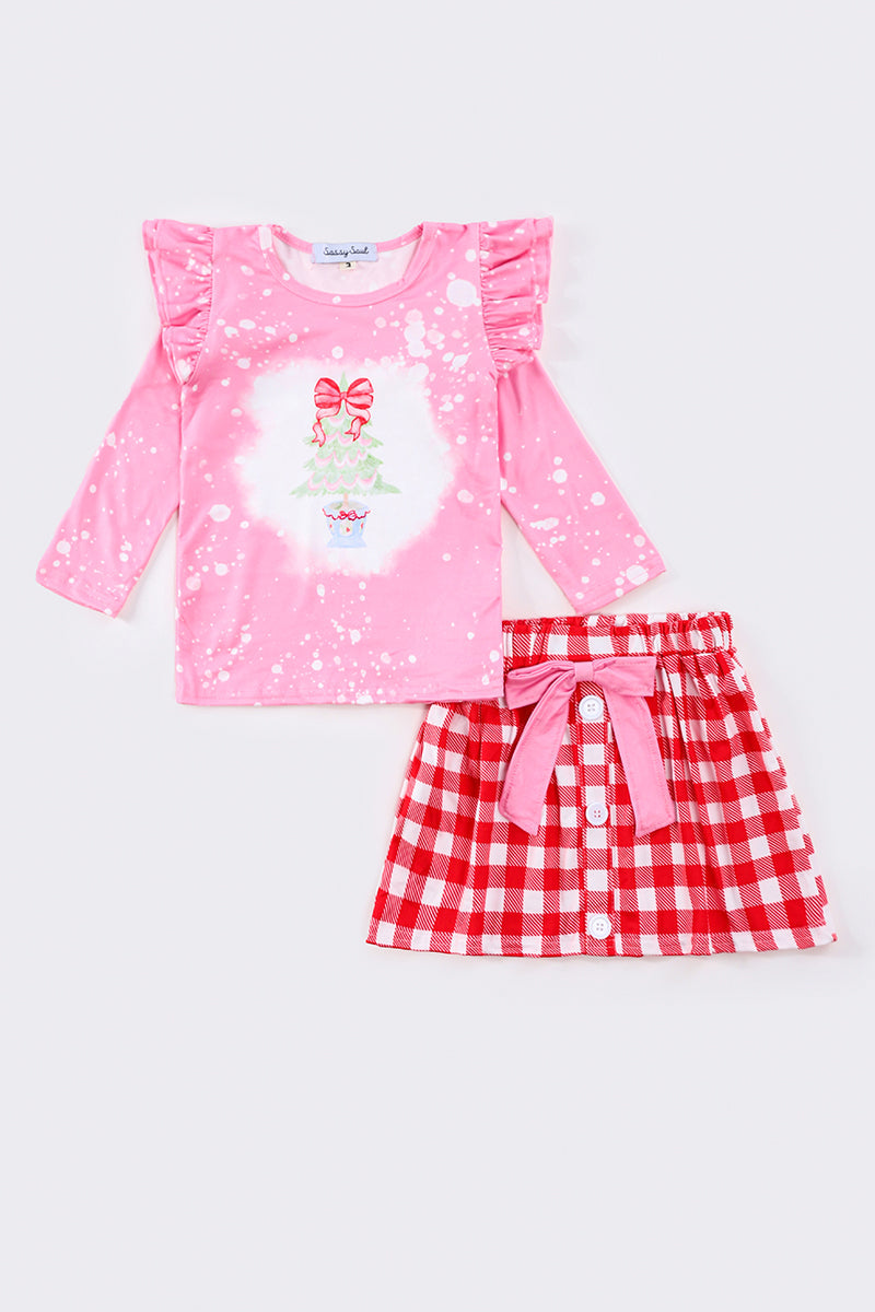 Pink christmas tree girl skirt set