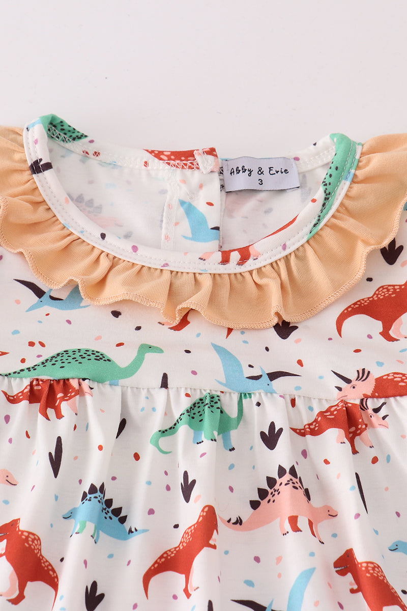 Roar with style in our Pink Dinosaur Print Girl Set! This playful outfit features a quirky and fun dinosaur print in a vibrant pink color. Perfect for your little girl who loves to stand out and have fun. Comes with top and bottom for a complete look. Rawr-some!