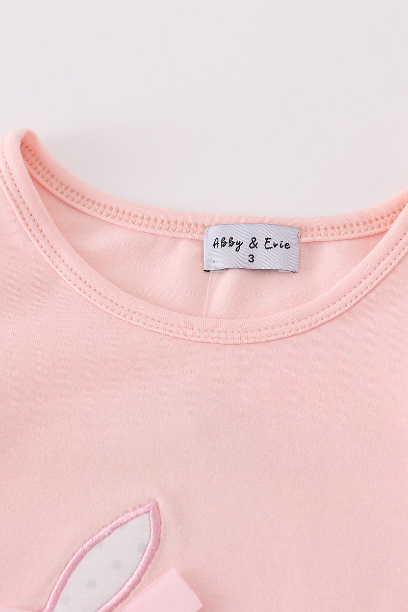 Pink easter bunny applique girl set