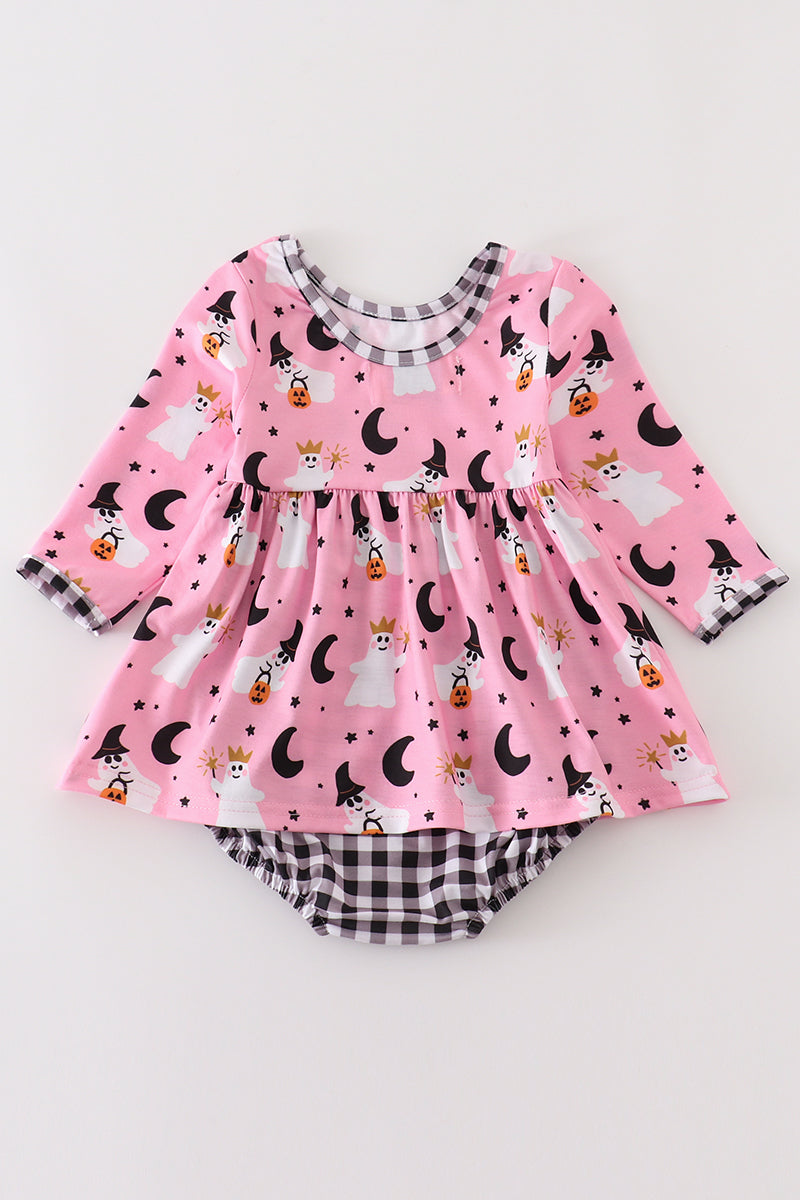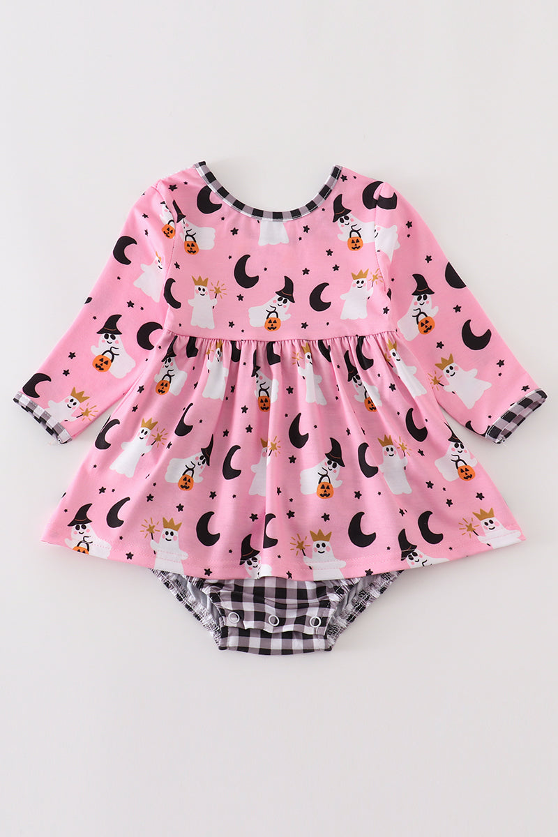 Get ready for some spooky fun with our Pink Halloween Ghost Girl Romper! Made with a playful pink design, this romper will have your little one looking ghoulishly adorable. Perfect for Halloween or everyday wear, this romper is sure to be a hit with both kids and parents. Don't miss out on this boo-tiful romper!
