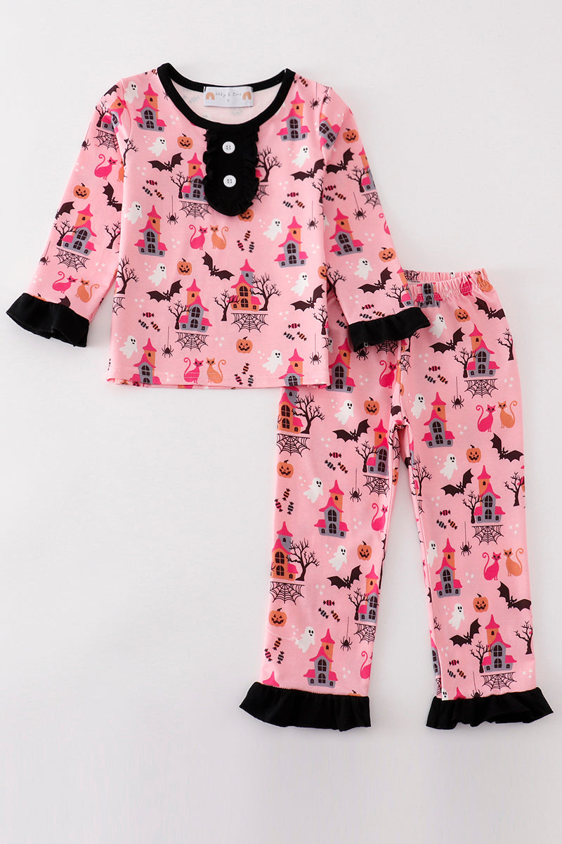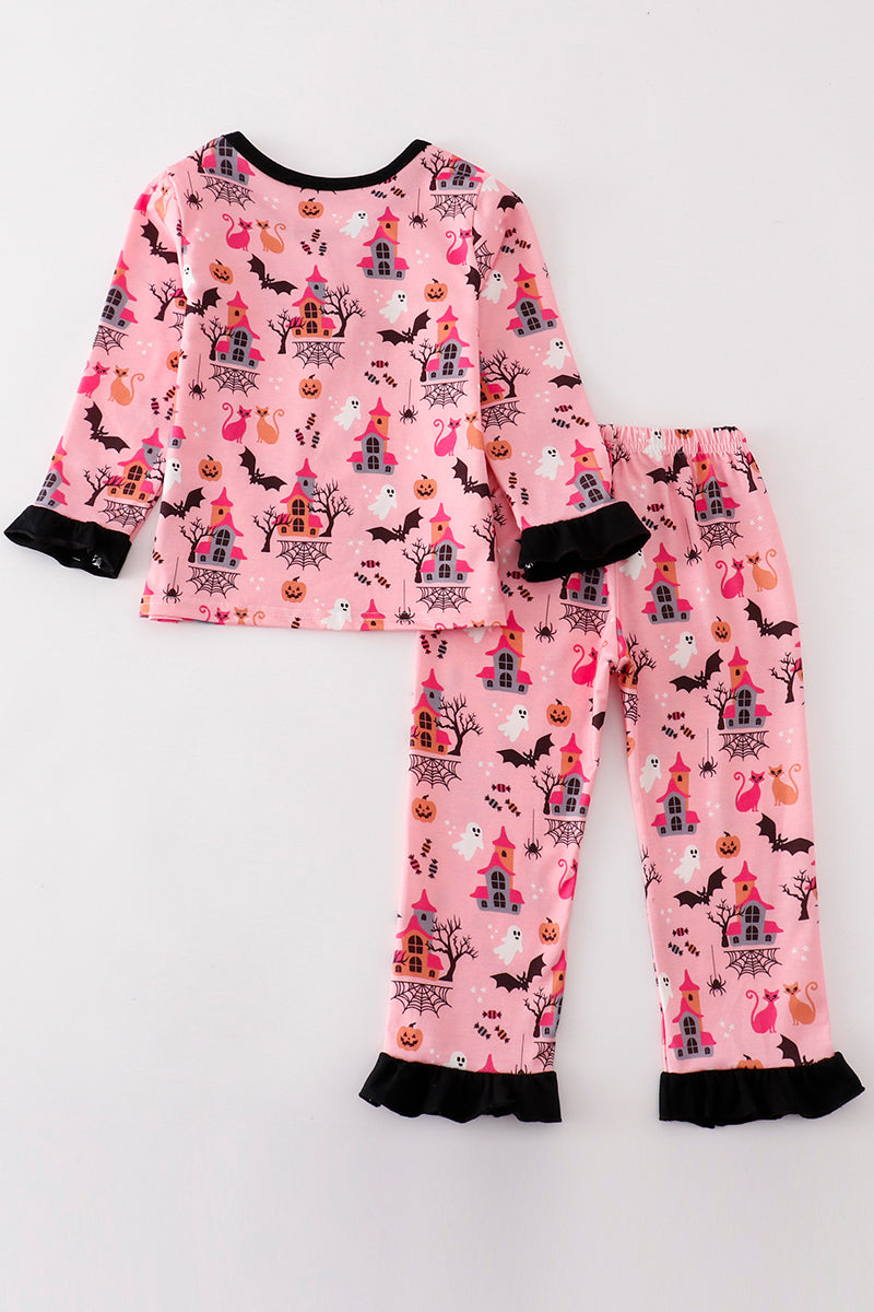 Pink halloween girl pajamas set