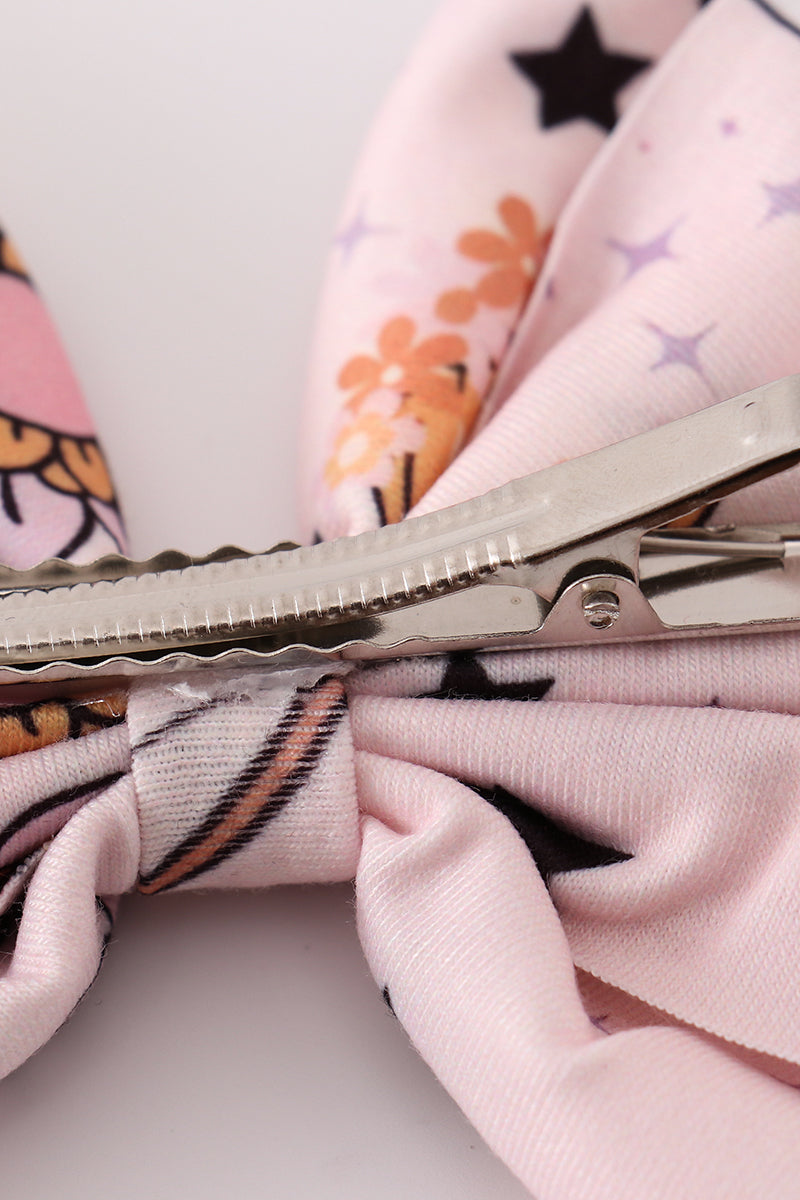 Add some spooky flair to your Halloween costume with our Pink Halloween Hair Bow. This playful accessory will have you standing out in the crowd and adding a touch of whimsy to your look. Perfect for parties or trick-or-treating, this hair bow is sure to be a hit. Boo-tiful and fun, just like you! (Get it? Boo-tiful? Bow-tiful? Okay, we'll stop now.)