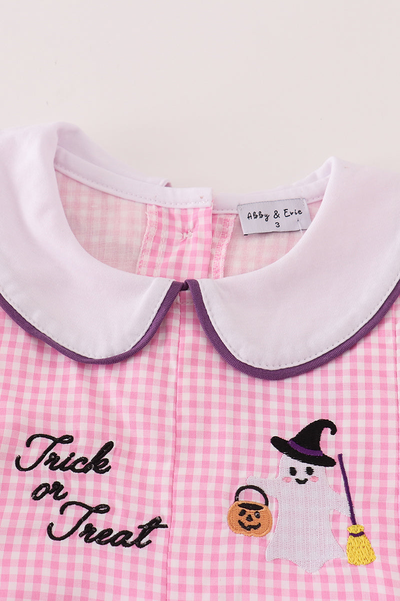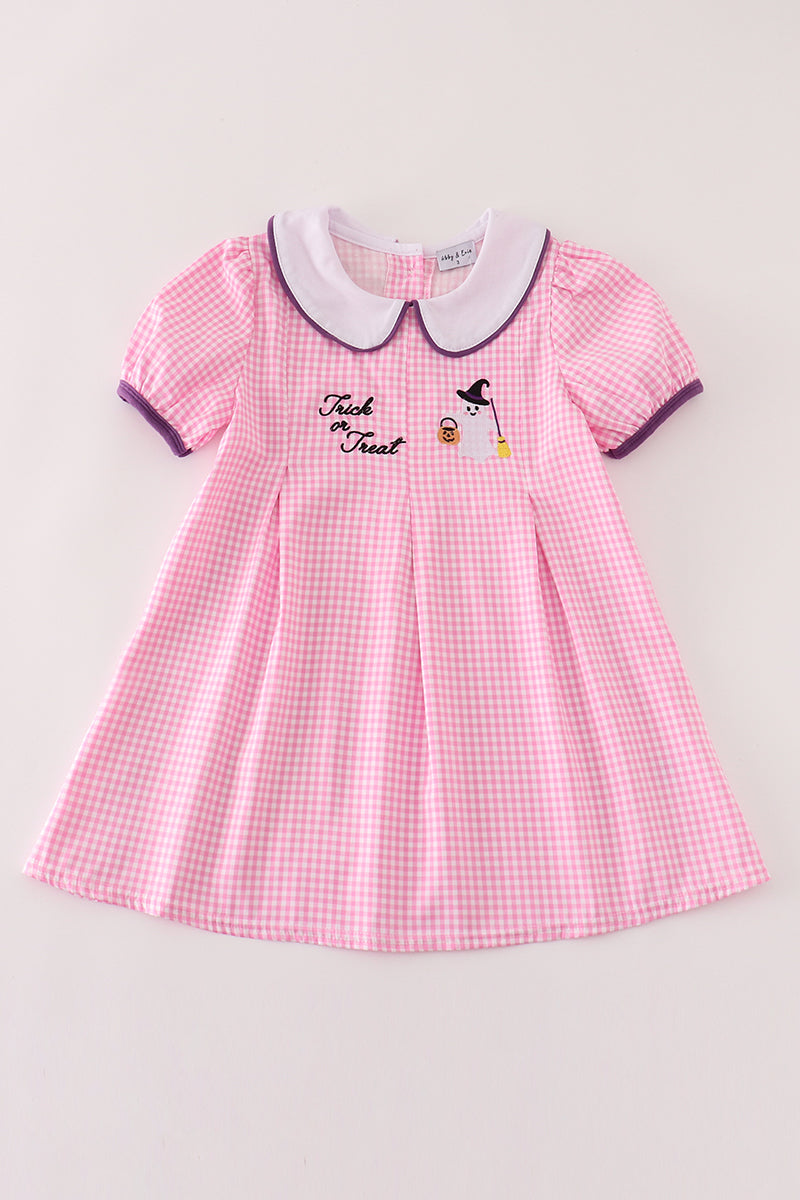 Be the cutest ghoul at the party with our Pink Plaid Halloween Embroidery Dress! Made with soft, lightweight fabric, this dress features fun Halloween-themed embroidery that will make you stand out. Perfect for any spooky occasion, this dress will bring a touch of playful charm to your wardrobe. (No trick, all treat!)
