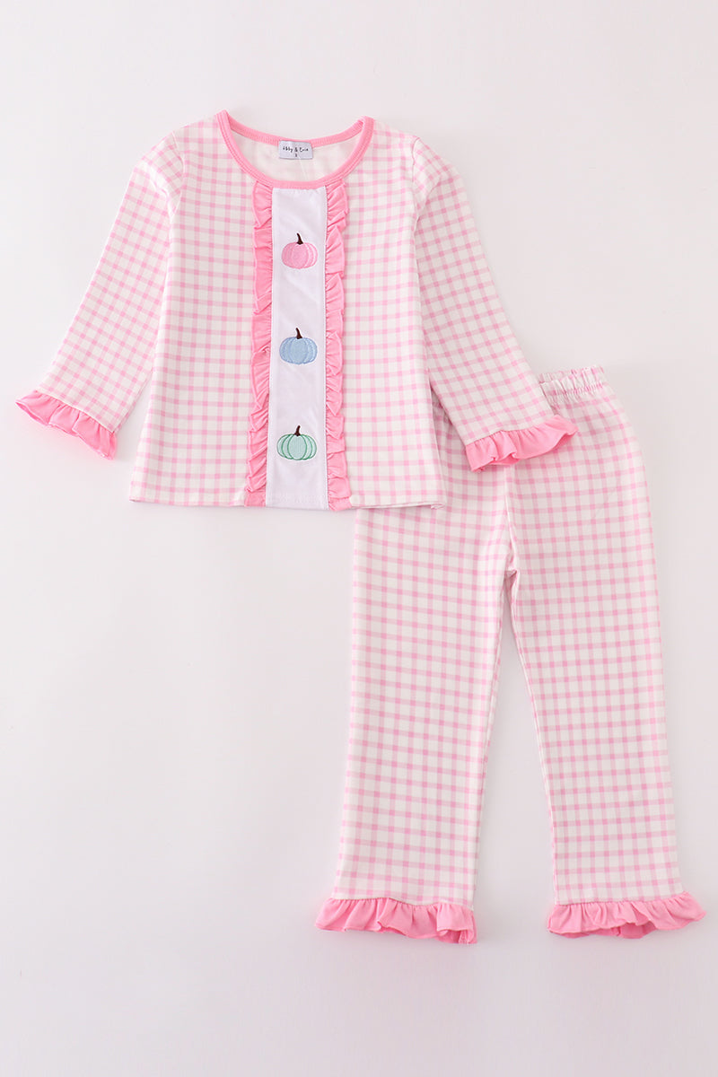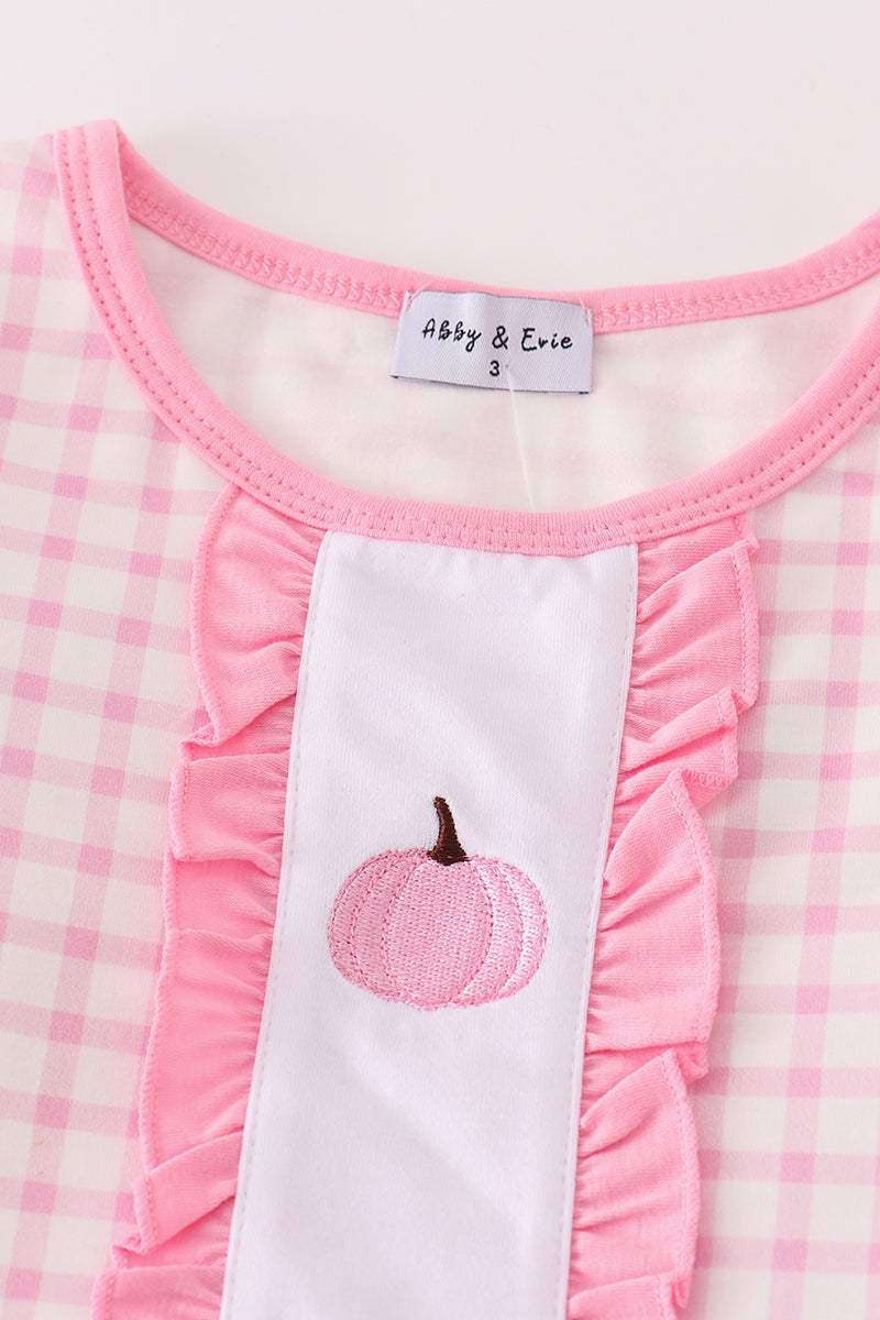 Grab this Pink Pumpkin Embroidery Plaid Girl Set for a fun and playful look! This set features adorable pumpkin embroidery on a trendy plaid pattern. Perfect for cute and quirky fashion lovers!