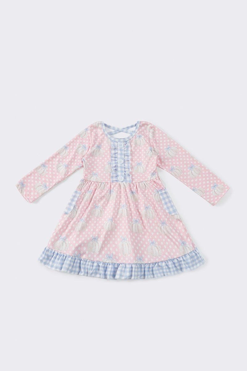 Get ready to turn heads with our Pink Pumpkin Plaid Ruffle Dress! Featuring a playful pumpkin plaid pattern and charming ruffle details, this dress is perfect for any occasion. Stand out and embrace your unique style with this quirky and fun dress. (Only available in pink, of course!)
