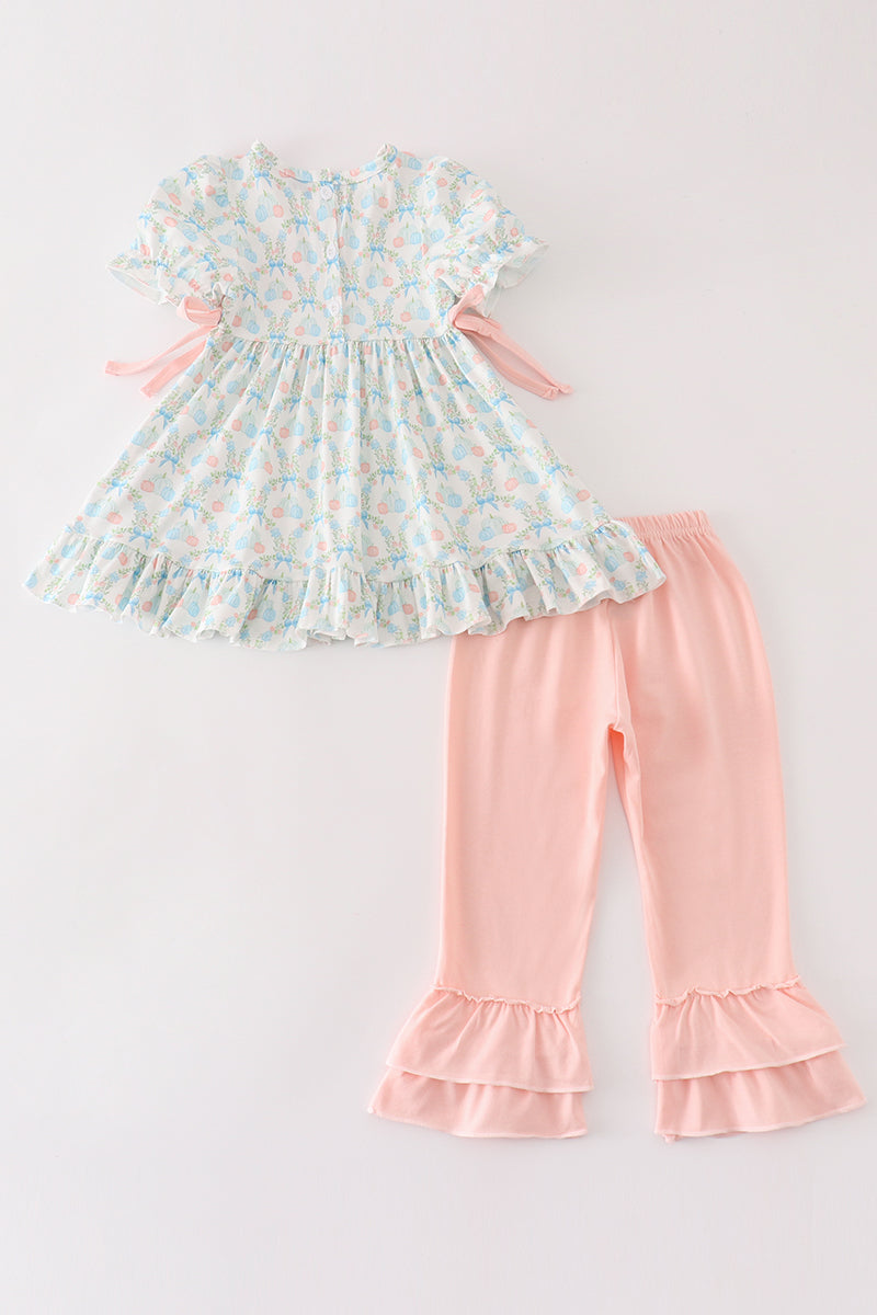 Pink pumpkin print girl set