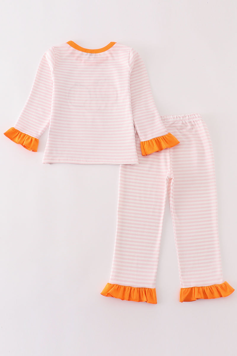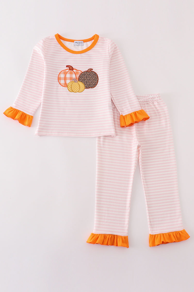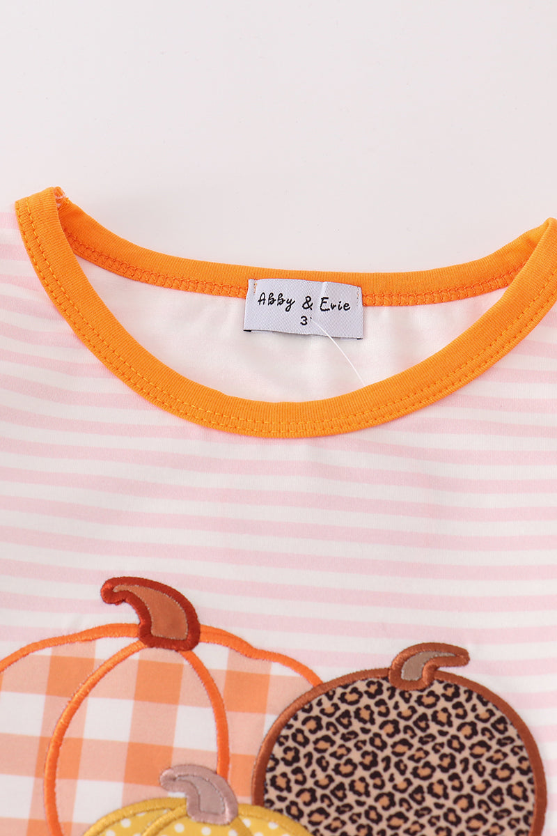 Dress up your little one in this adorable pink stripe pumpkin applique girl set! The perfect outfit for fall festivities, the cute pumpkin design adds a fun touch to the classic stripes. Made with comfortable and durable materials, your little girl will be ready for playtime and pictures.
