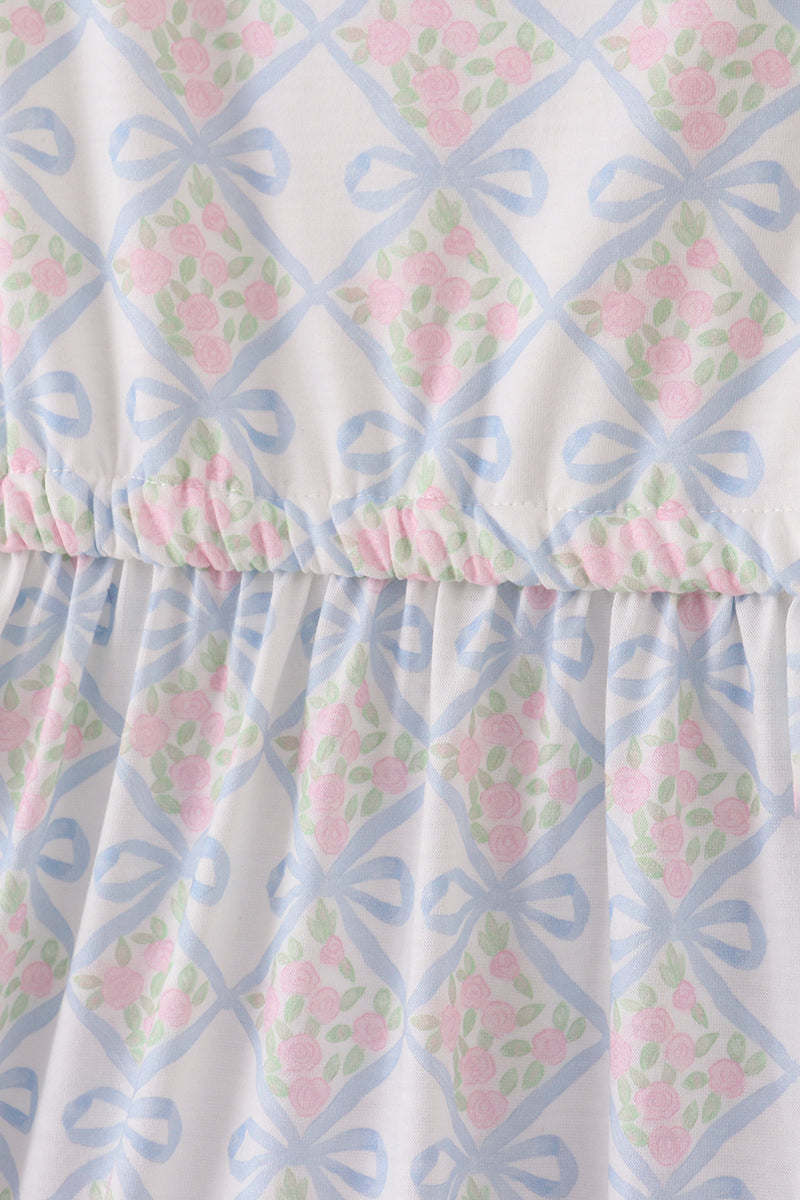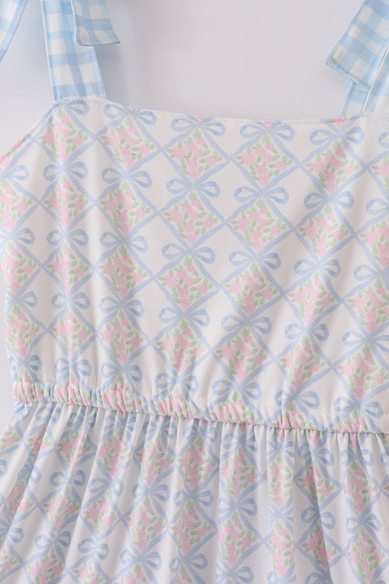 Plaid floral bow print mom tiered dress