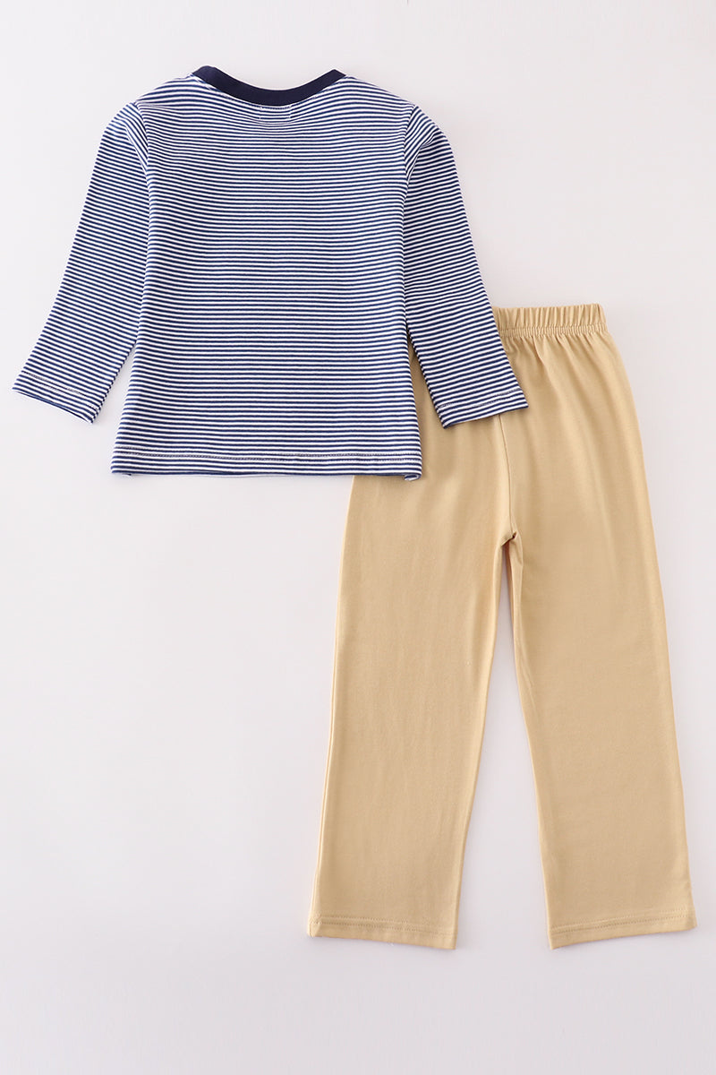 Get your little one ready to hit the road (or the playground) in style with our Premium Blue Stripe Truck Applique Boy Set. Made with high-quality materials and featuring a fun and playful truck design, this set is perfect for any adventure. Upgrade their wardrobe with comfort and cuteness in one!