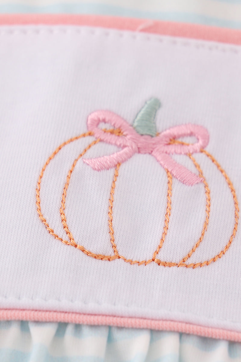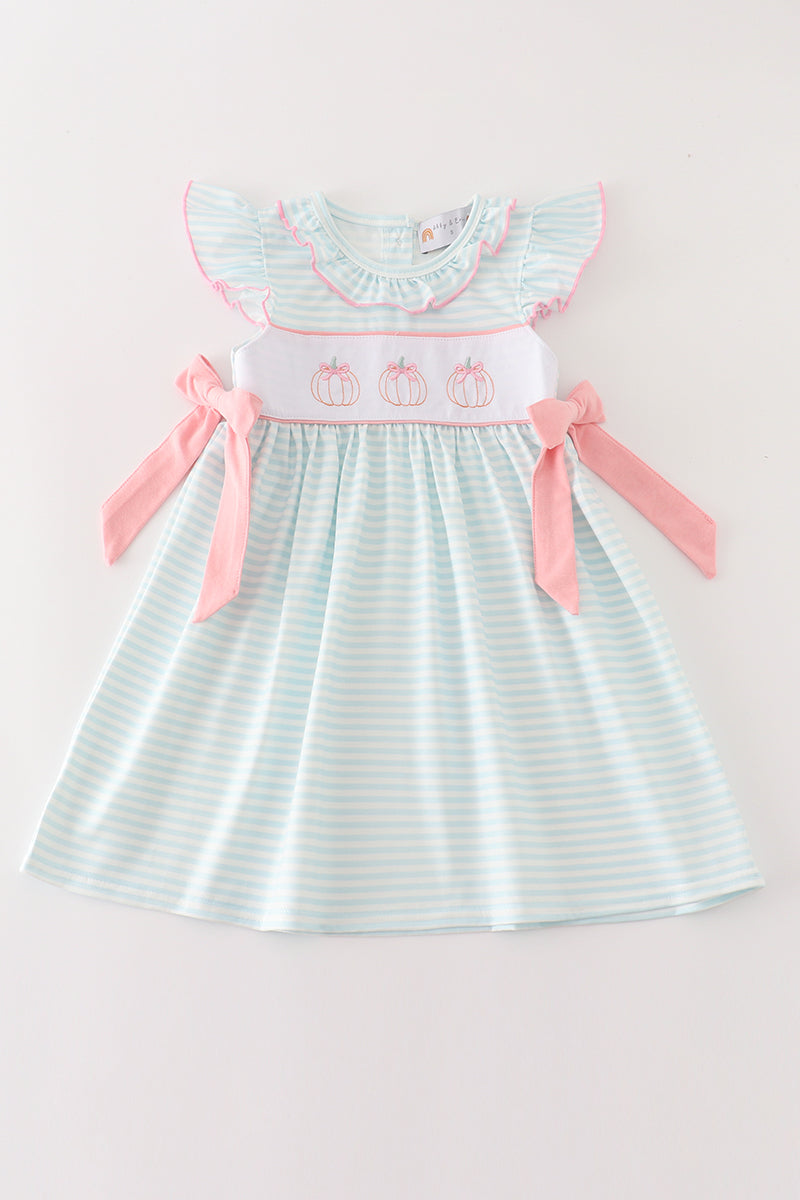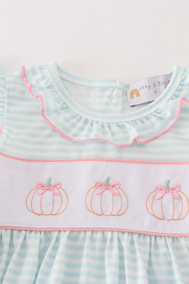 Pumpkin embroidery stripe dress