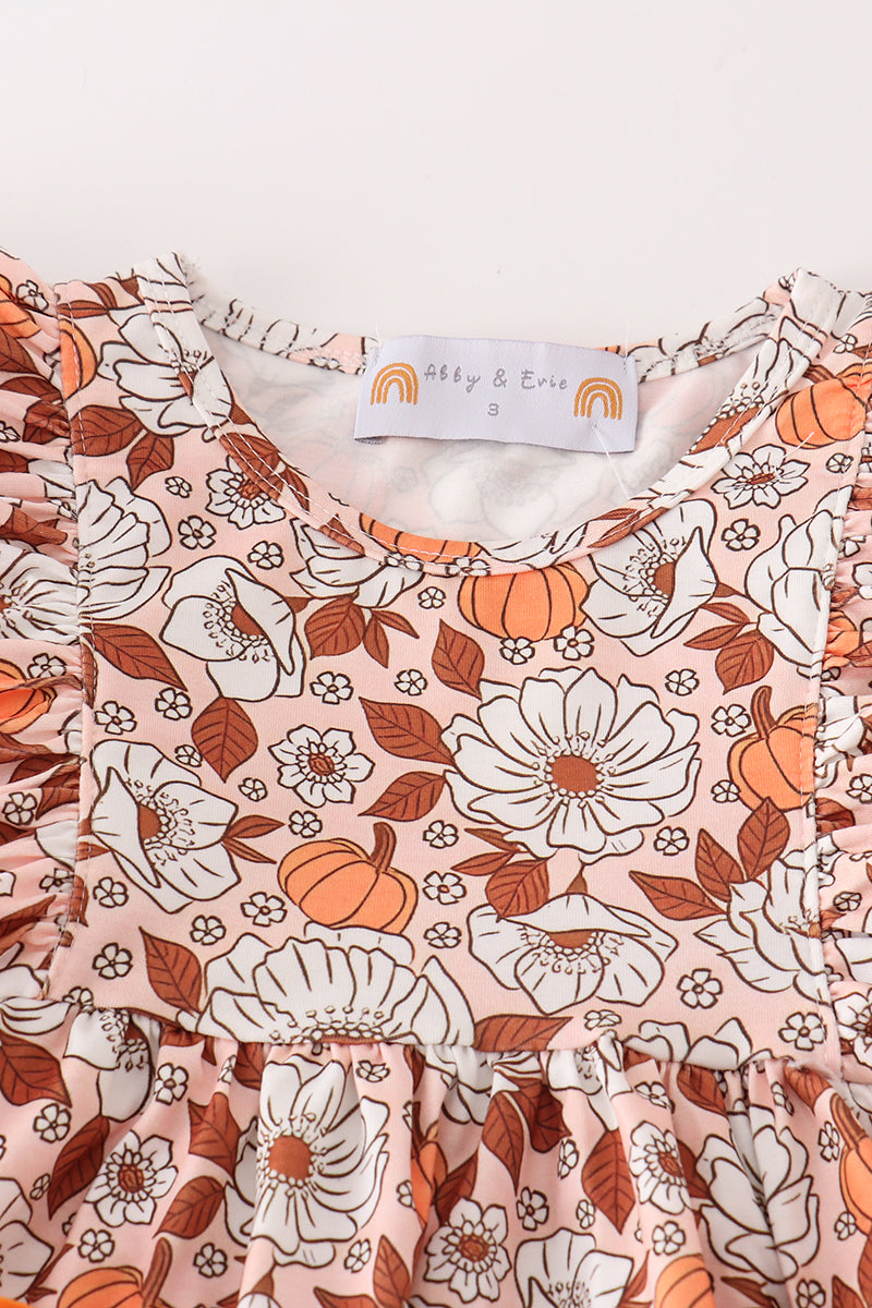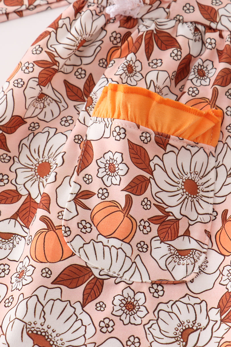 Indulge in some playful pumpkin fun with this floral print lace ruffle set! Perfect for any fall occasion, this set will make a statement with its unique pumpkin design and delicate lace details. Get ready to turn heads and be the talk of the town with this quirky and stylish set.